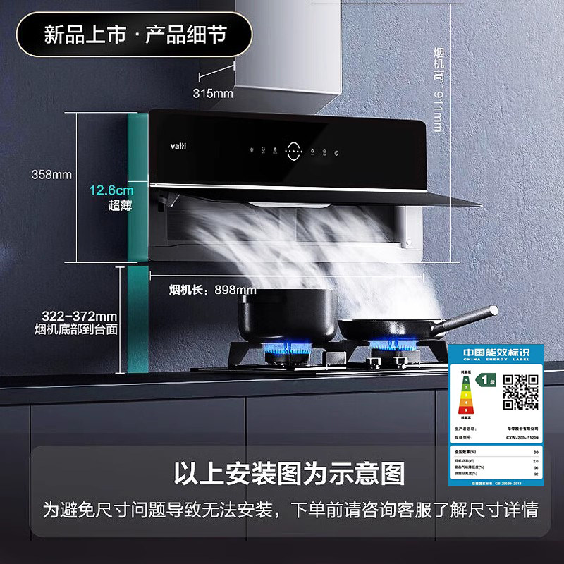 Vatti Ultra-Thin Range Hood Set x5+71b Home Kitchen Gas Plave Set Automatic Wash Office Flagship Store