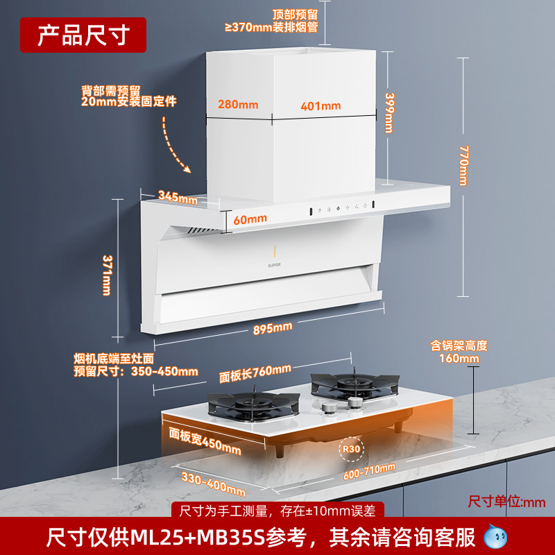 Supor Ml25 Новый инвертор белый верхний верхний двойной двойной сдвоенный набор газовой плиты с капюшоном 7 -характер