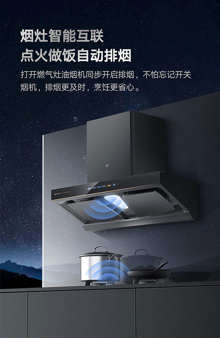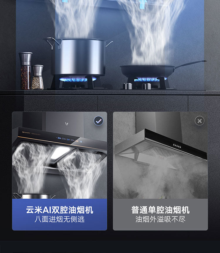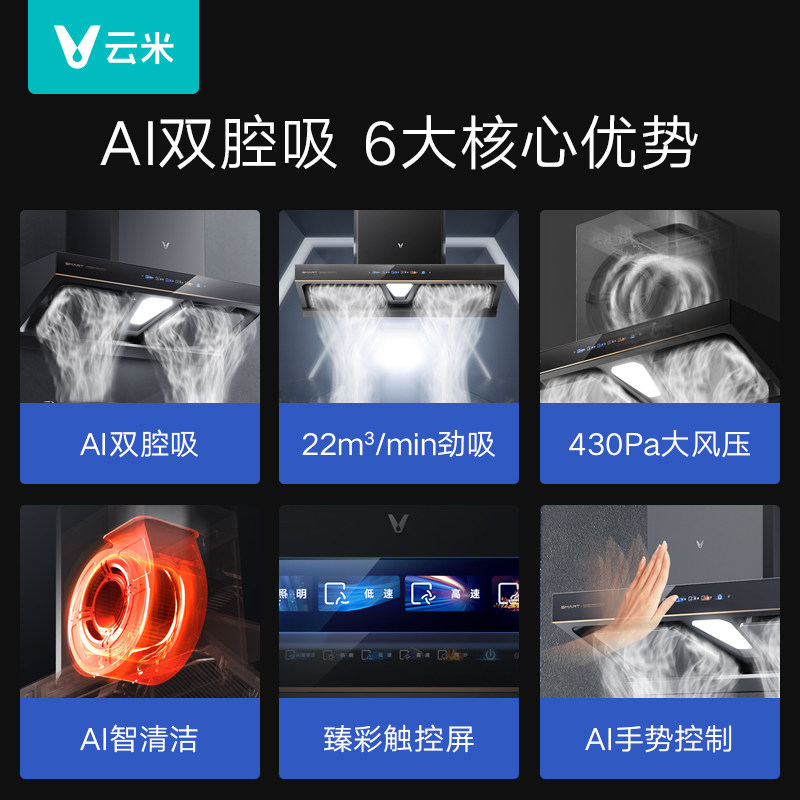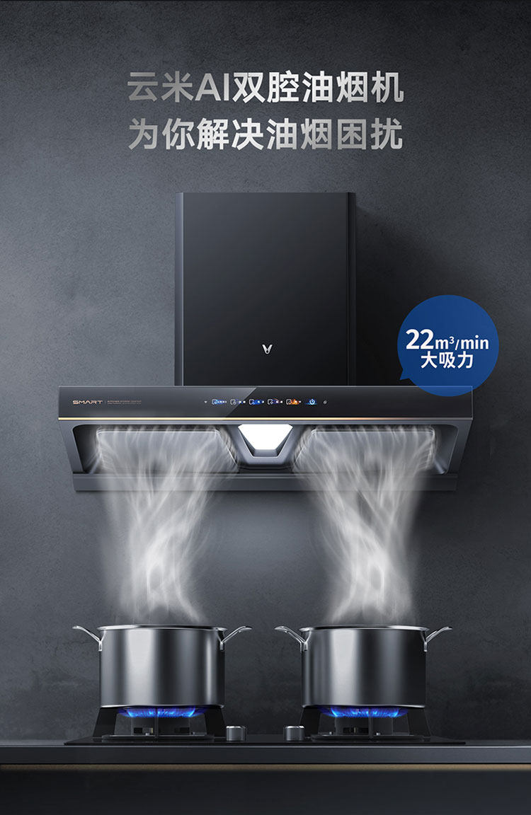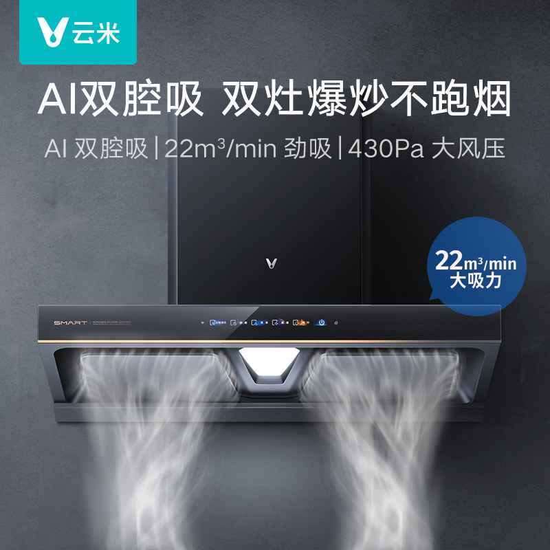 Yunmi Smoke Suite AI Двусторонний всасывающий капюшон сжигает газовая плита Smart Kitchen Hood Interconnection