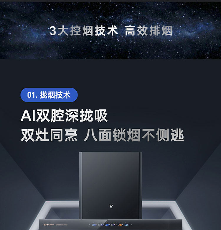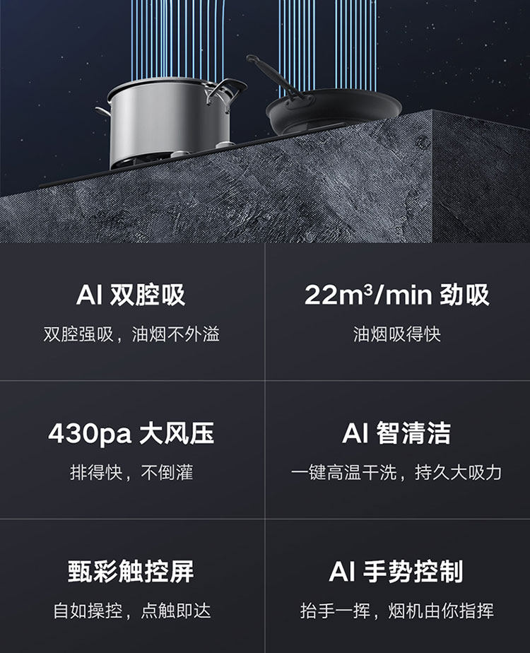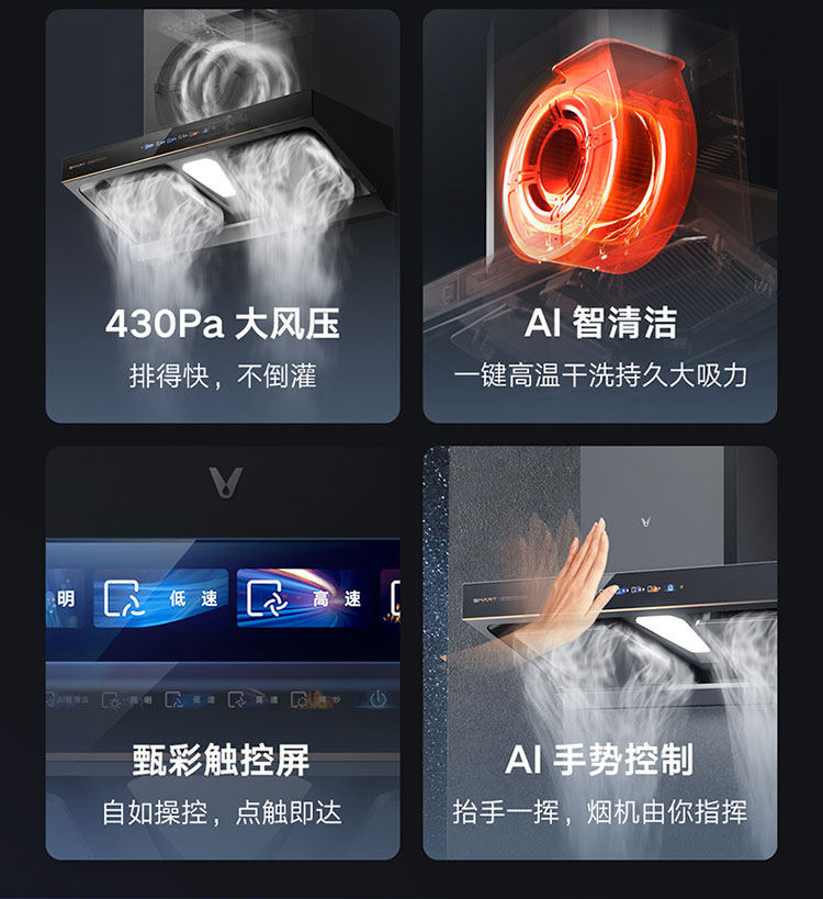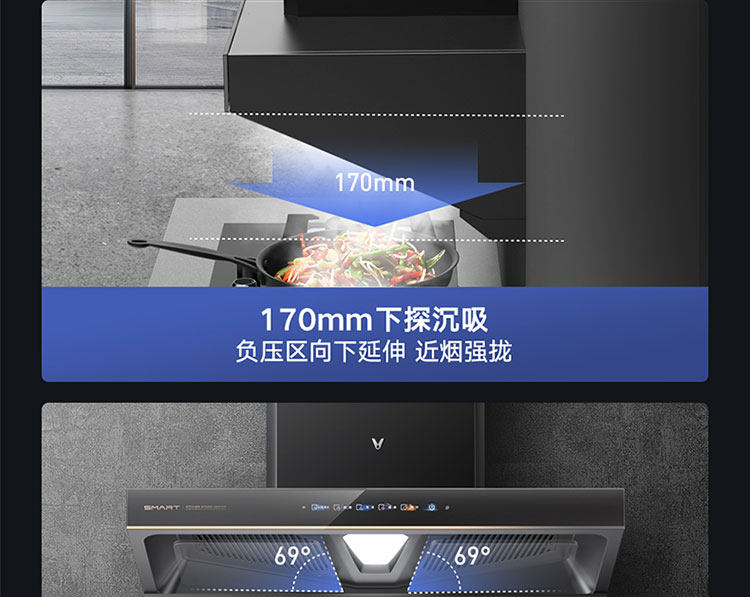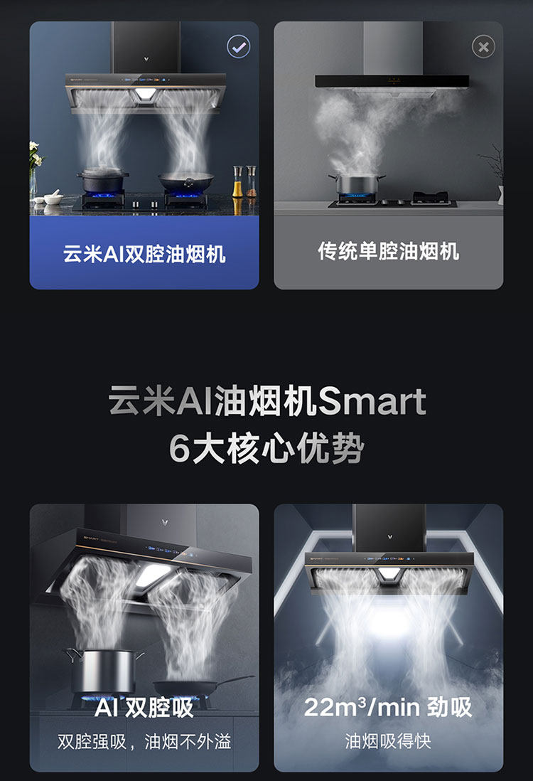Yunmi Smoke Suite AI Двусторонний всасывающий капюшон сжигает газовая плита Smart Kitchen Hood Interconnection