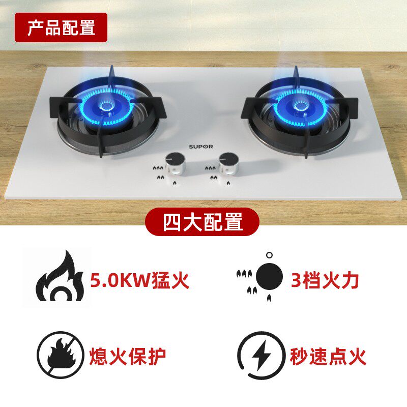SUPOR UL19 Белый верхний верхний двойной всасывание с двойной всасыванием газовой плита газовидная кулинарная еда дома 7 -характерная всасывающая сила
