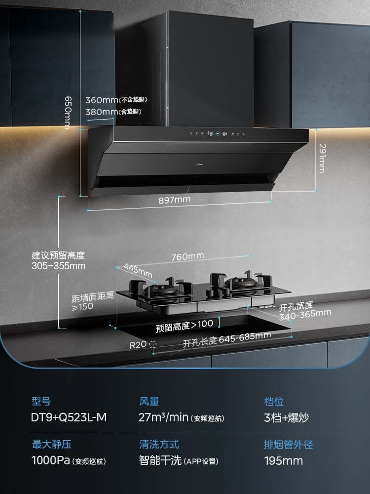 Midea DT9 с капюшоном набор для блюд с подъемом вытяжки на кухнях.