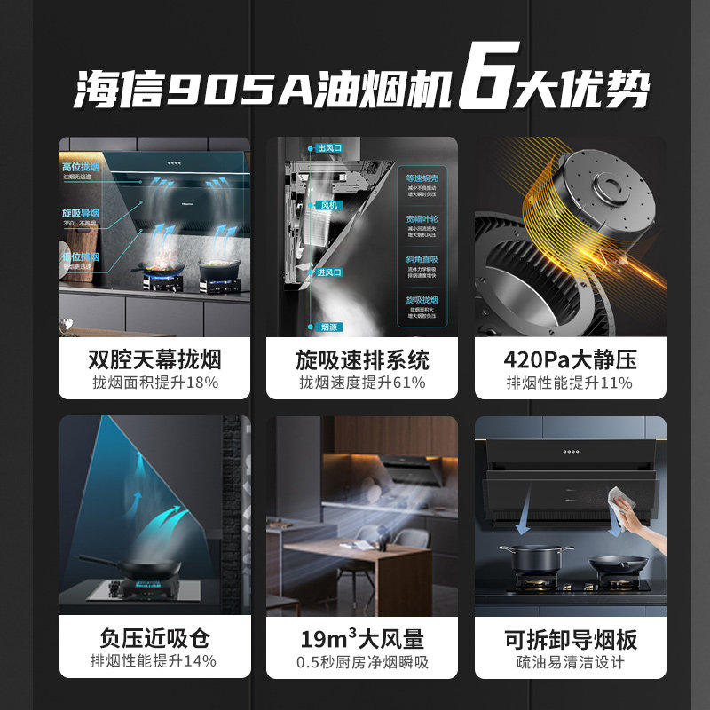 Hisense Top Bilateral Smoke Set 19M 风 Большой капюшон первого класса для первого класса.
