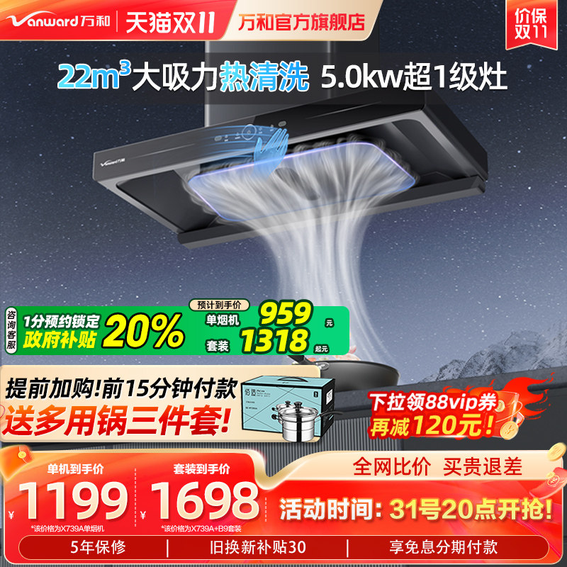 Wanhe Top всасывающий ассортимент капюшона капюшона европейской в стиле капюшонной плиты набор еда дома большая всасывающая мощность 739