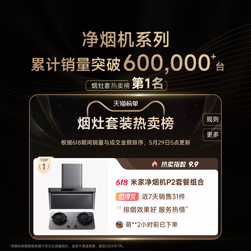 Чиновник Xiaomi Mijia Smart Hood Machine P2 Top всасывающий диапазон вытяжка с газовой плитой набор домашней кухни большая всасывание