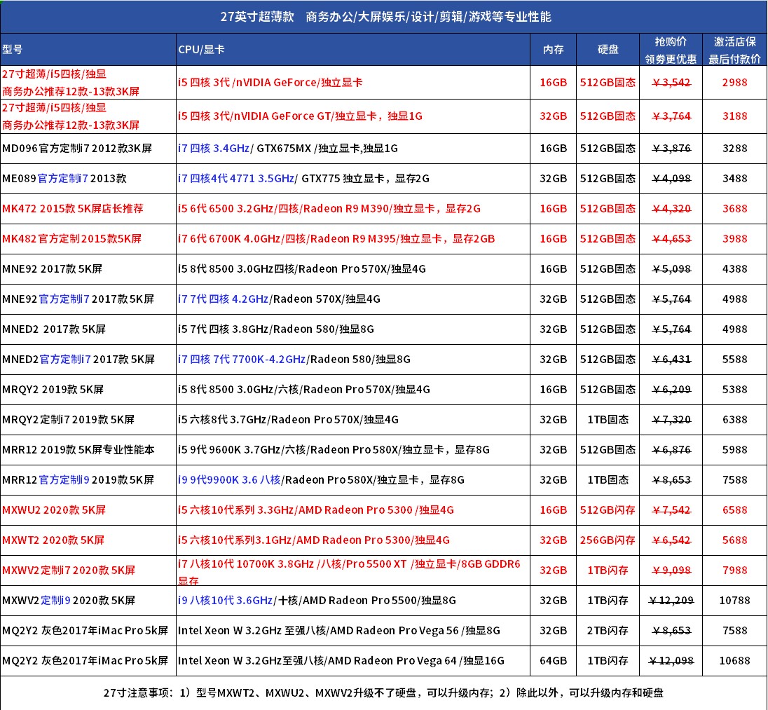 - 19 моделей 27-дюймовый ультра-тонкий экран 5K/I5 шести ядер/выделенный дисплей 4G/16G+512 ГБ твердотельный диск QY2