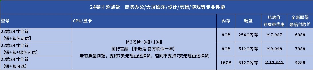- 23 Новая 24-дюймовая [Официальная совместная гарантия один год]/M3 Чип + 8 ядер + 10 ядер/16G + 512 ГБ флэш-память/Национальный официальный флип [Silver + Blue необязательно]