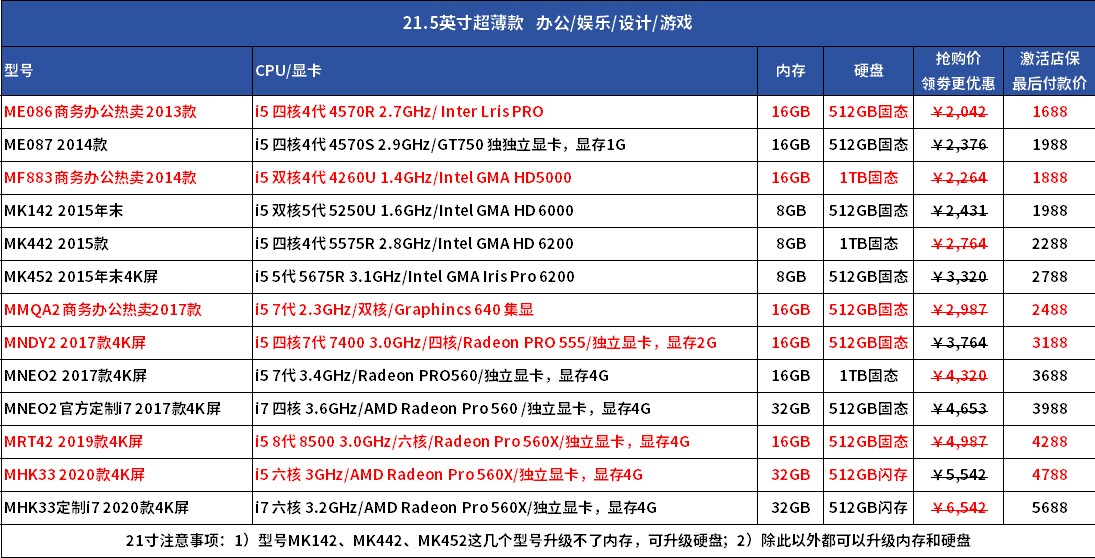 - 21,5-дюймовый ультра-тонкий/i5 Двойной ядер/16G+1 ТБ твердотельный привод 883