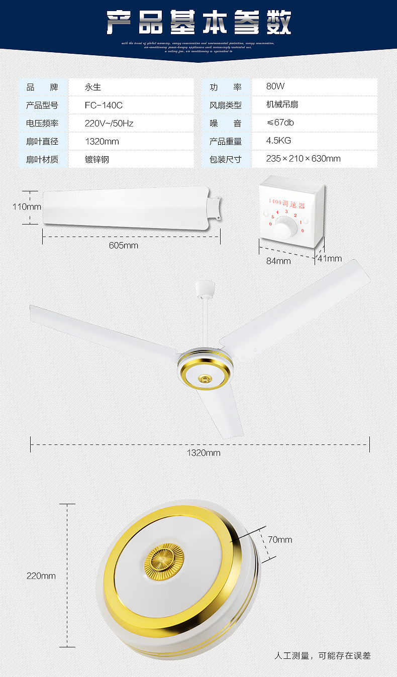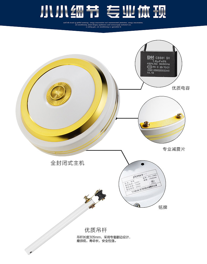 Eternal Shengsheng Hanging Fan House Electric Fan Living Room Iron Leaf Industry Pure Copper San Ye Dafeng Restaurant Five Leaf Hanging King