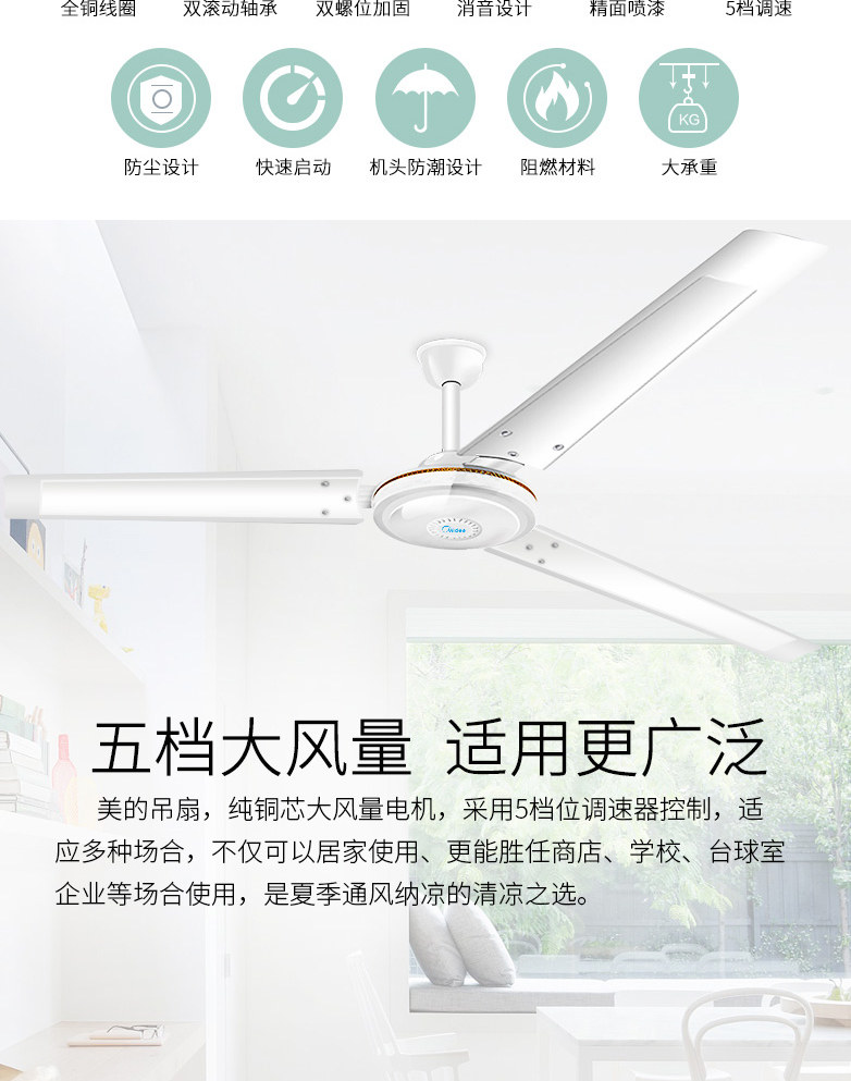 Midea Living Room Старая в стиле вентиляционного вентилятора. Электрический вентилятор 48 -INCH 56 -INCH LAGICE WIND MECANICAL SAMPUTION
