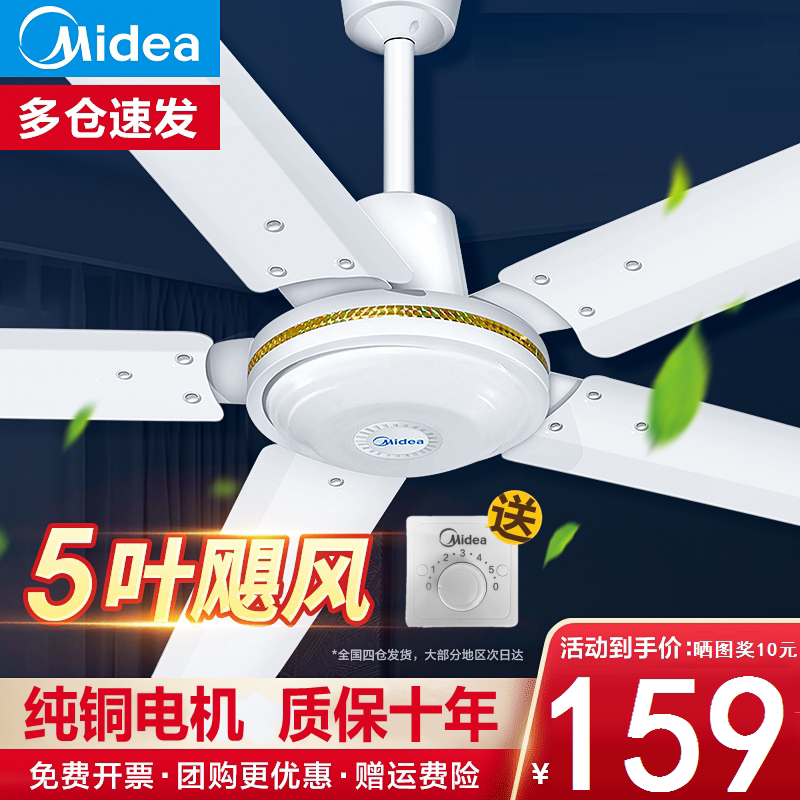 Мидиа из пяти листьев висящих вентиляторов King FC140-DD Большой поклонник домашний вентилятор Home Living Room Pure Медный мотор класс, висящий вентилятор большой ветер