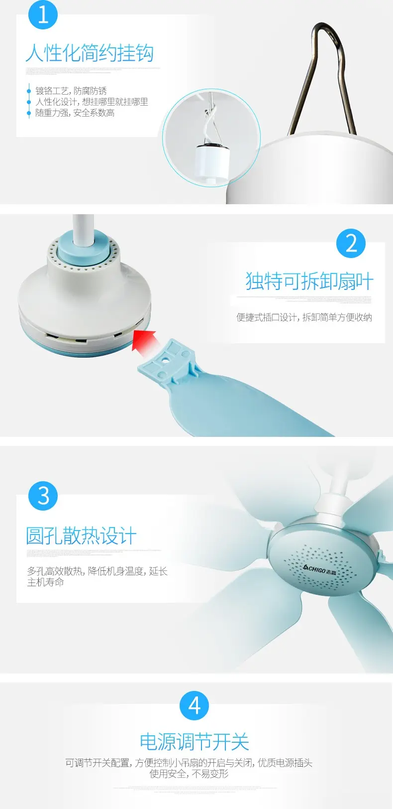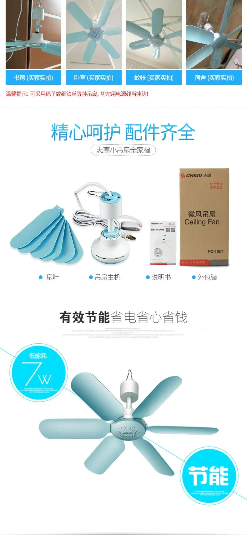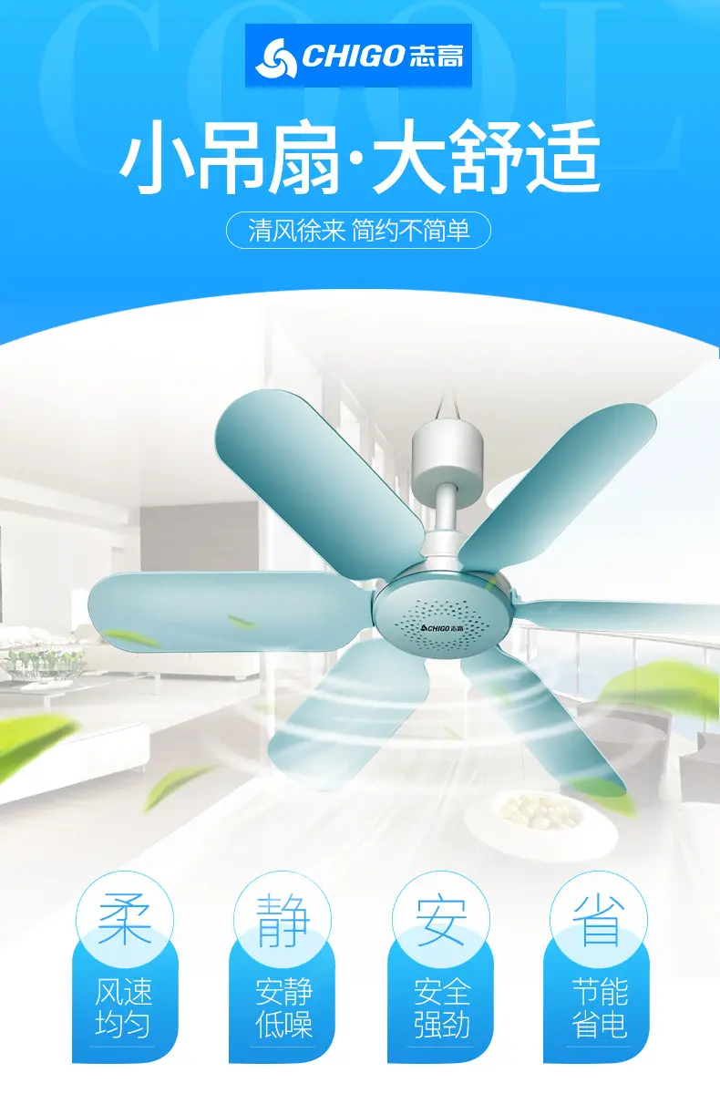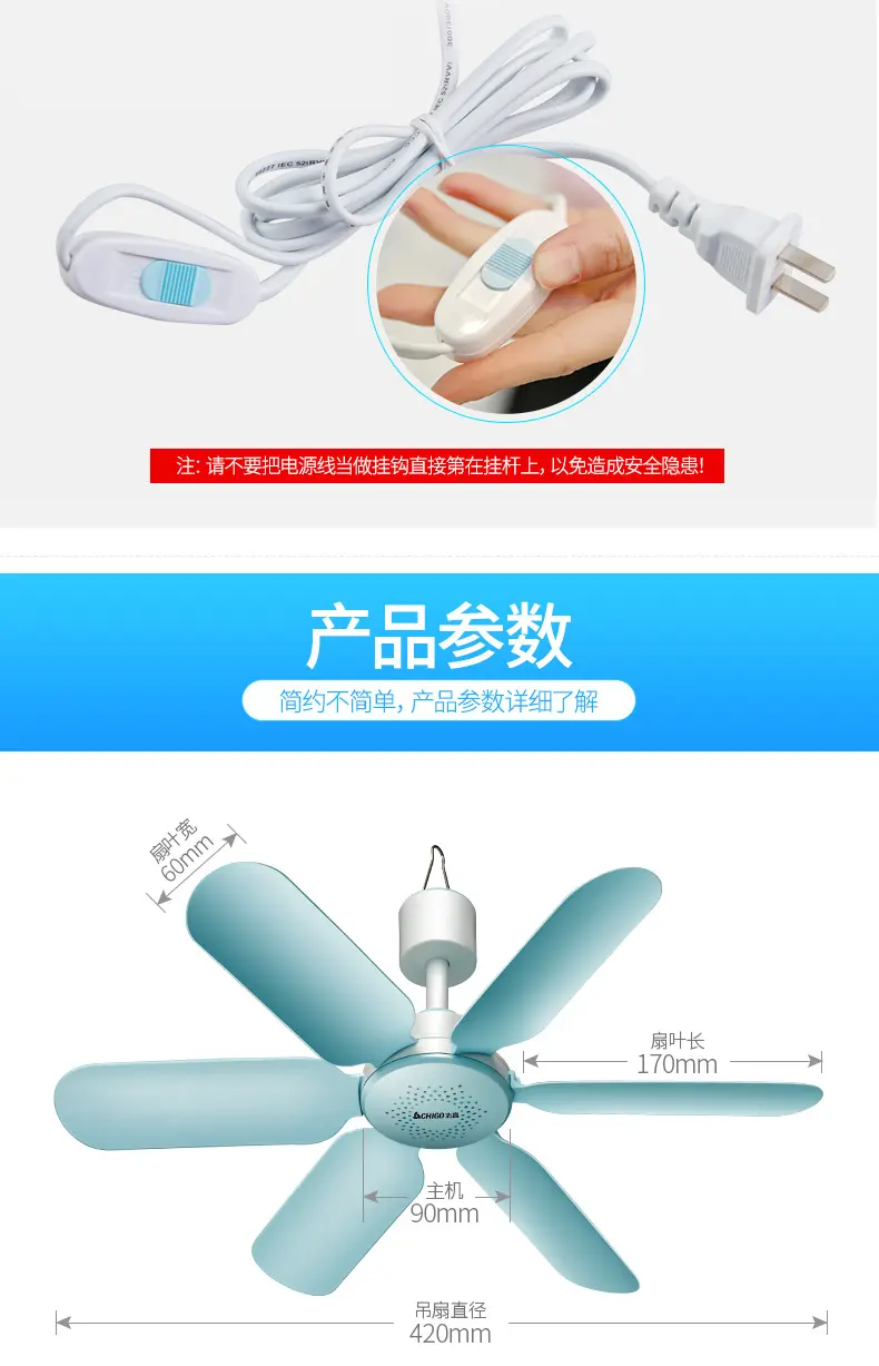 Chigo небольшой потолочный вентилятор бытовой электрический вентилятор студенческое общежитие маленький ветерок подвесной вентилятор кровать вентилятор с москитной сеткой бесшумный сильный ветер