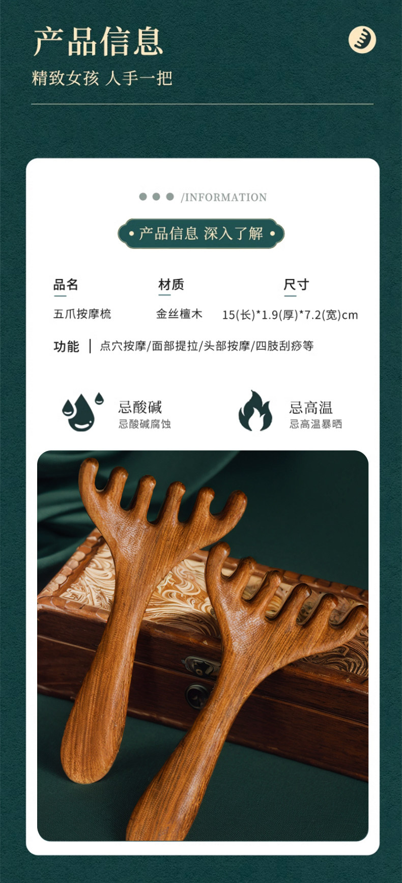 Сандаловый массаж Sandalwood Meridian Massage Five Claw Massage Droving Gudge Head of the Head and Sear
