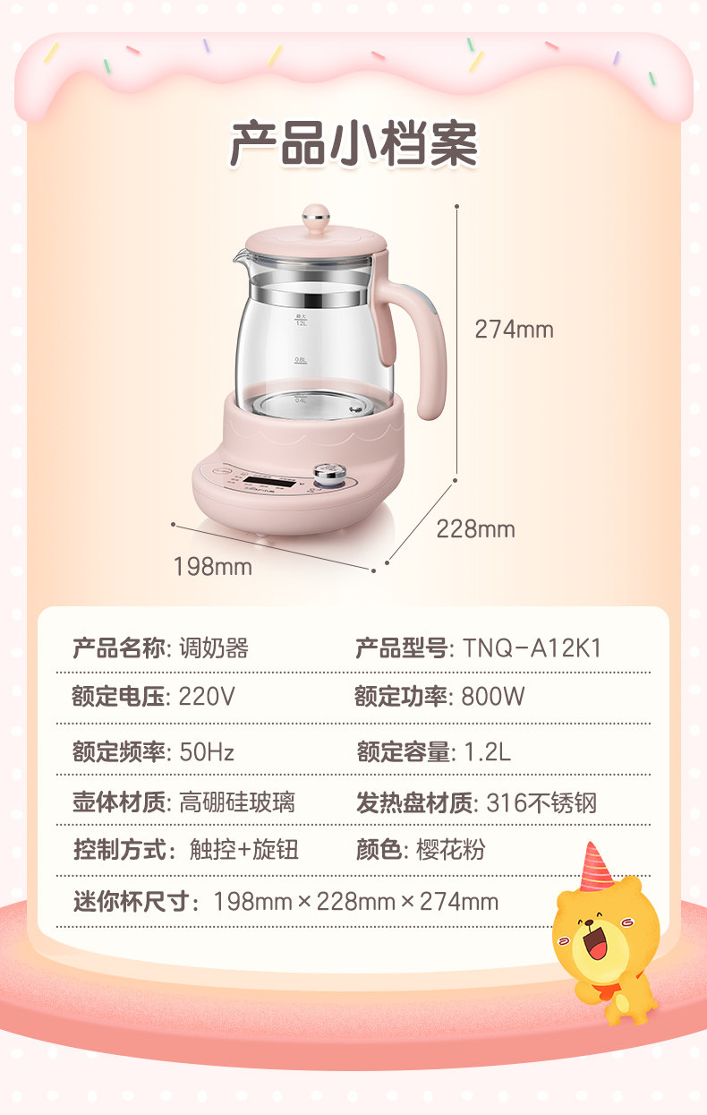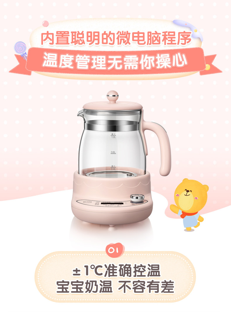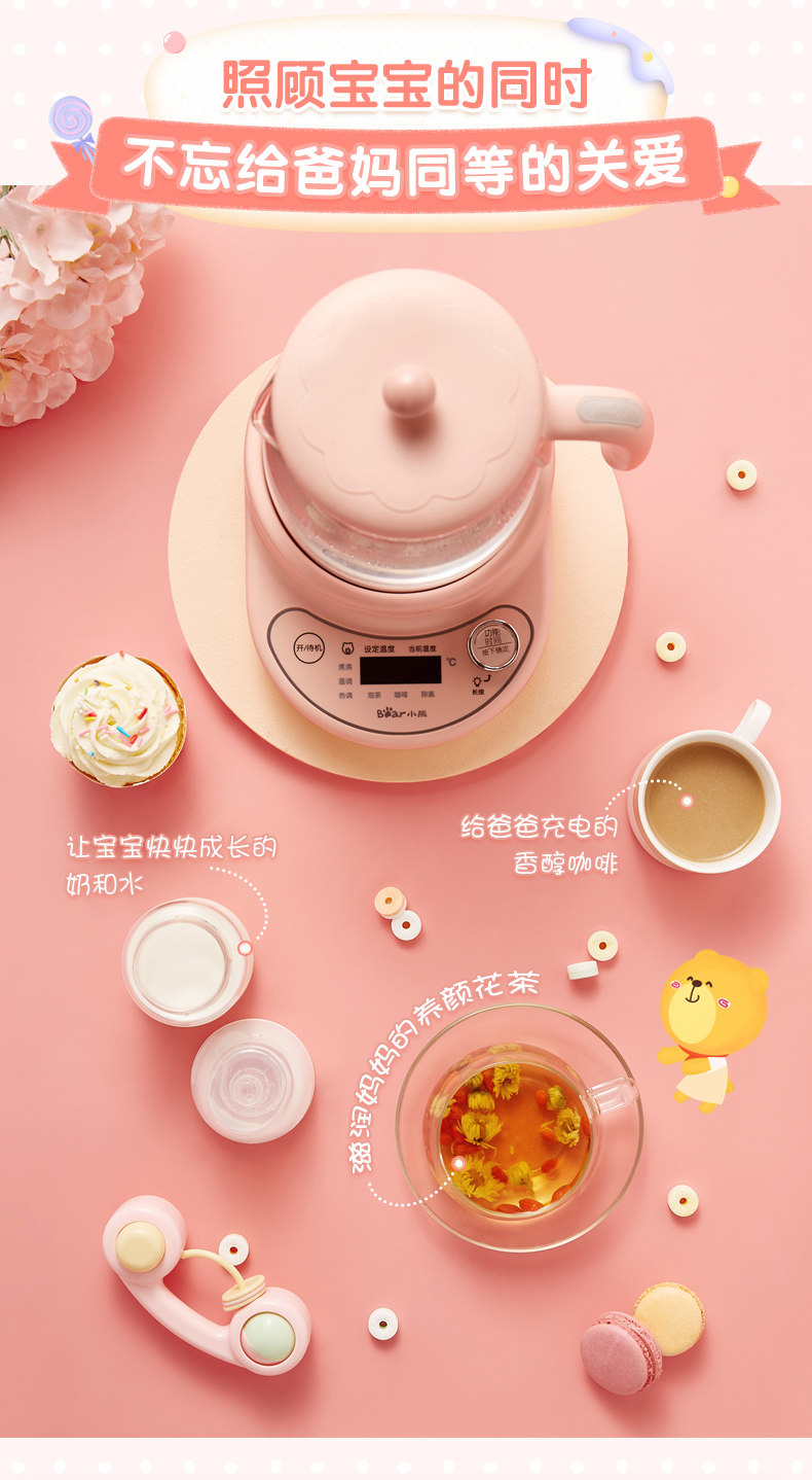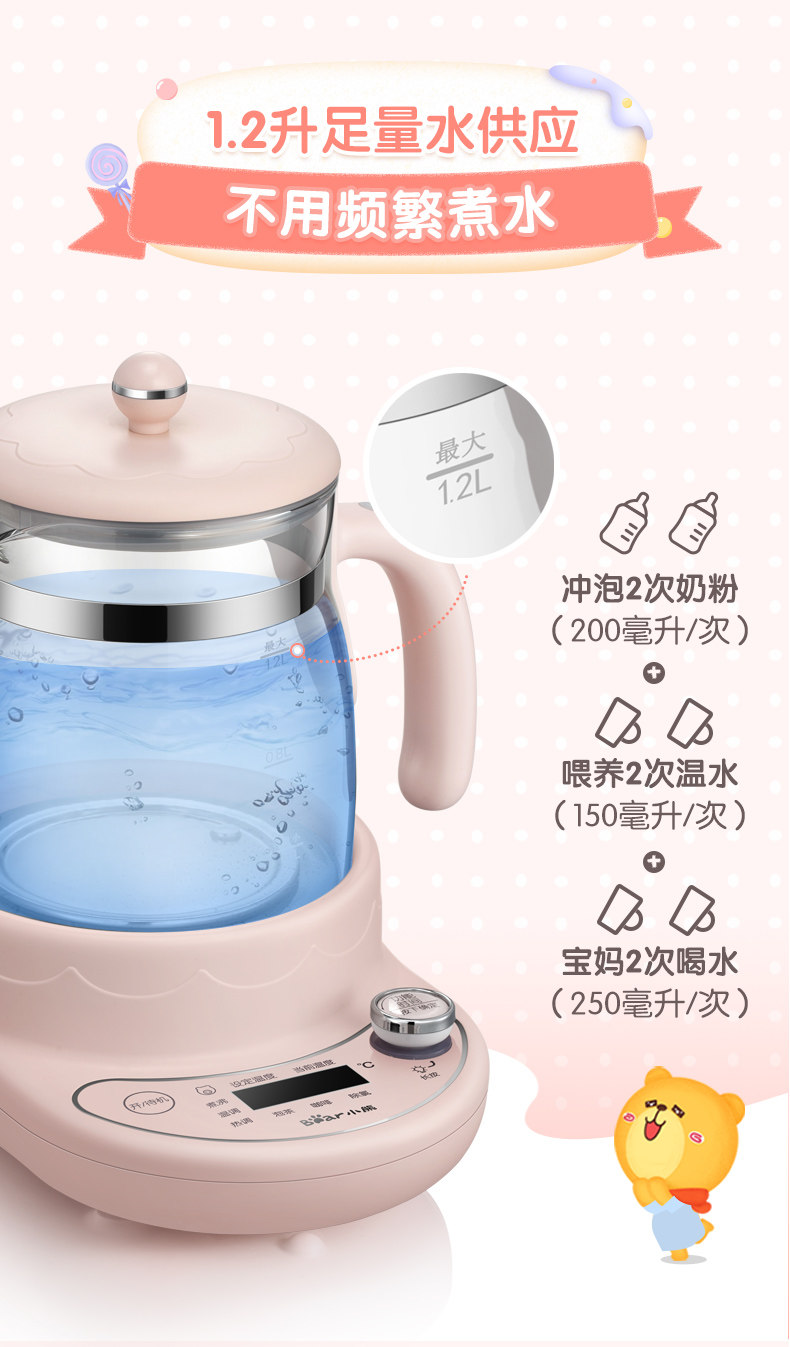 Детский молокоотсос, умный чайник, стеклянный термос, автоматический подогреватель молока, сухое молоко, с медвежатами, поддерживает постоянную температуру, полностью автоматический