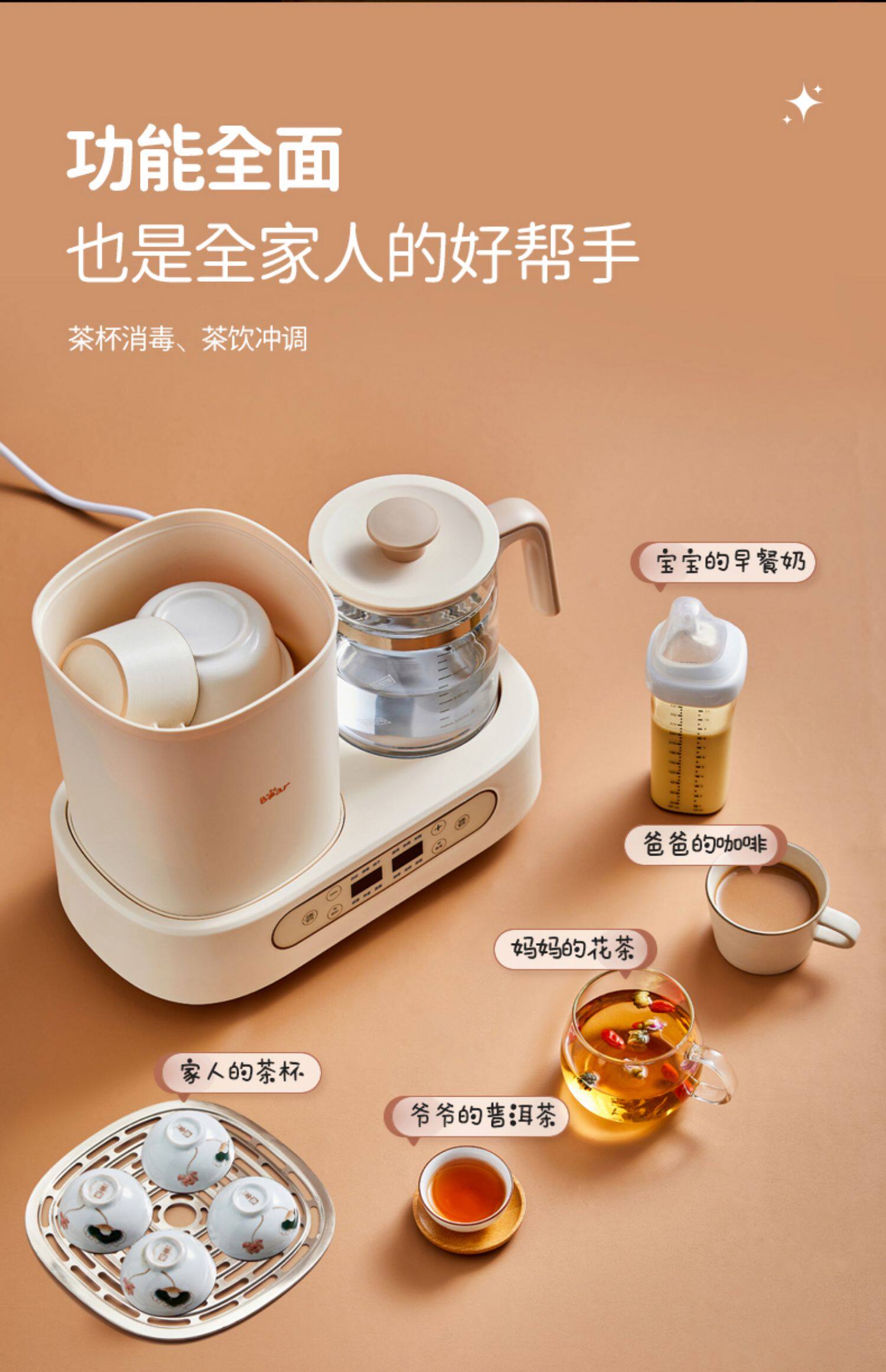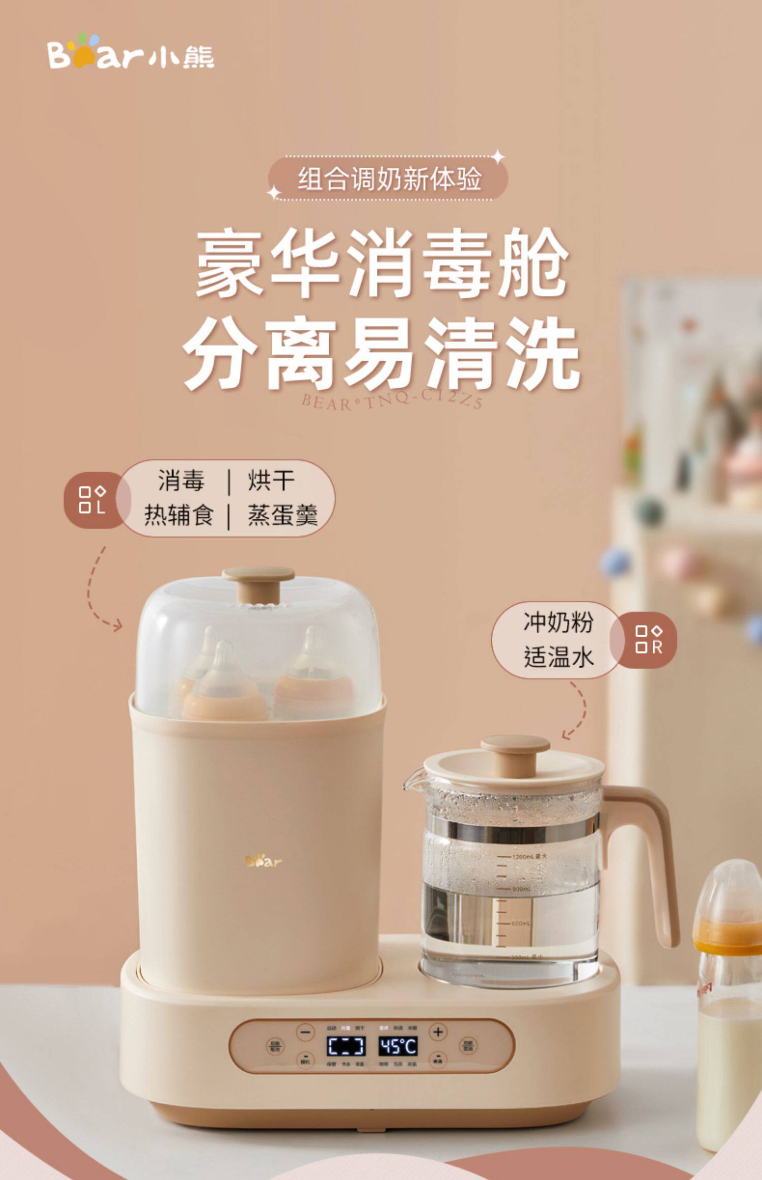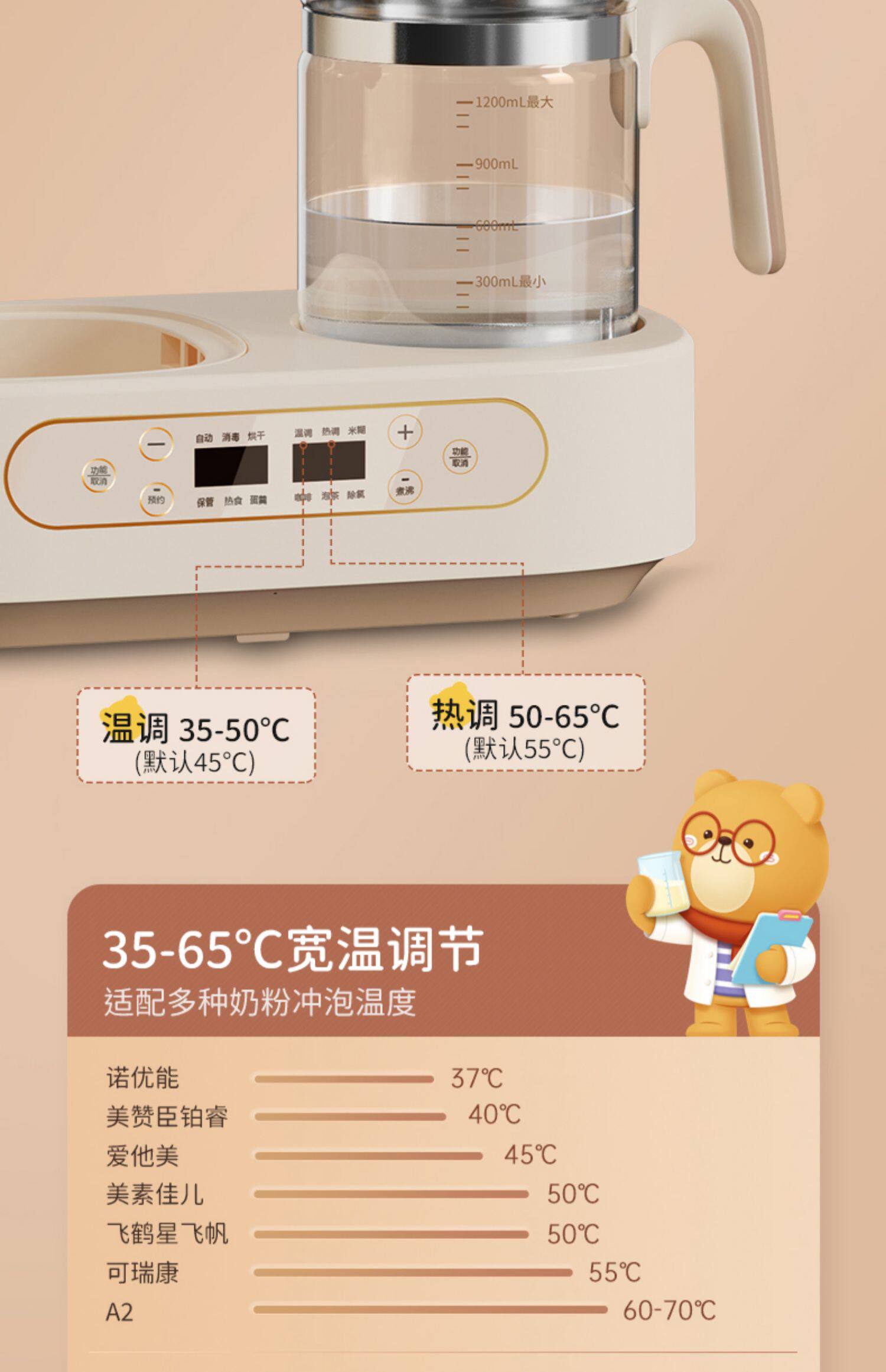 Умный молокоотсос, детский чайник, антибактериальный подогреватель молока, с медвежатами, поддерживает постоянную температуру