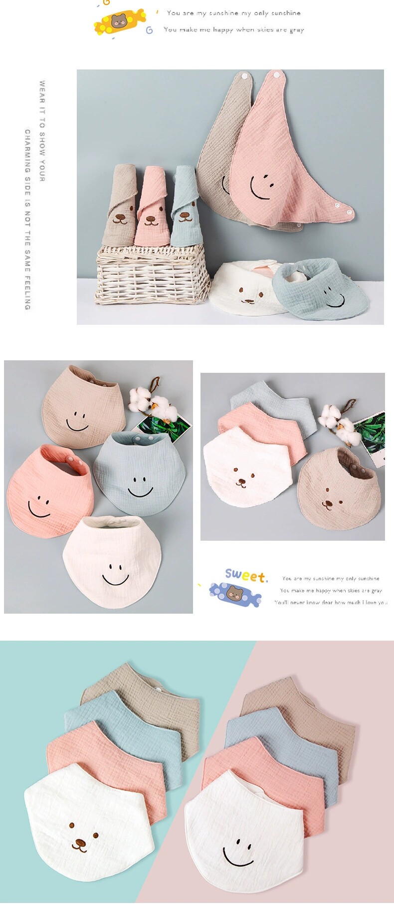 Марлевый слюнявчик, хлопковый детский регулируемый нагрудник, шарф для младенца, в корейском стиле, с вышивкой