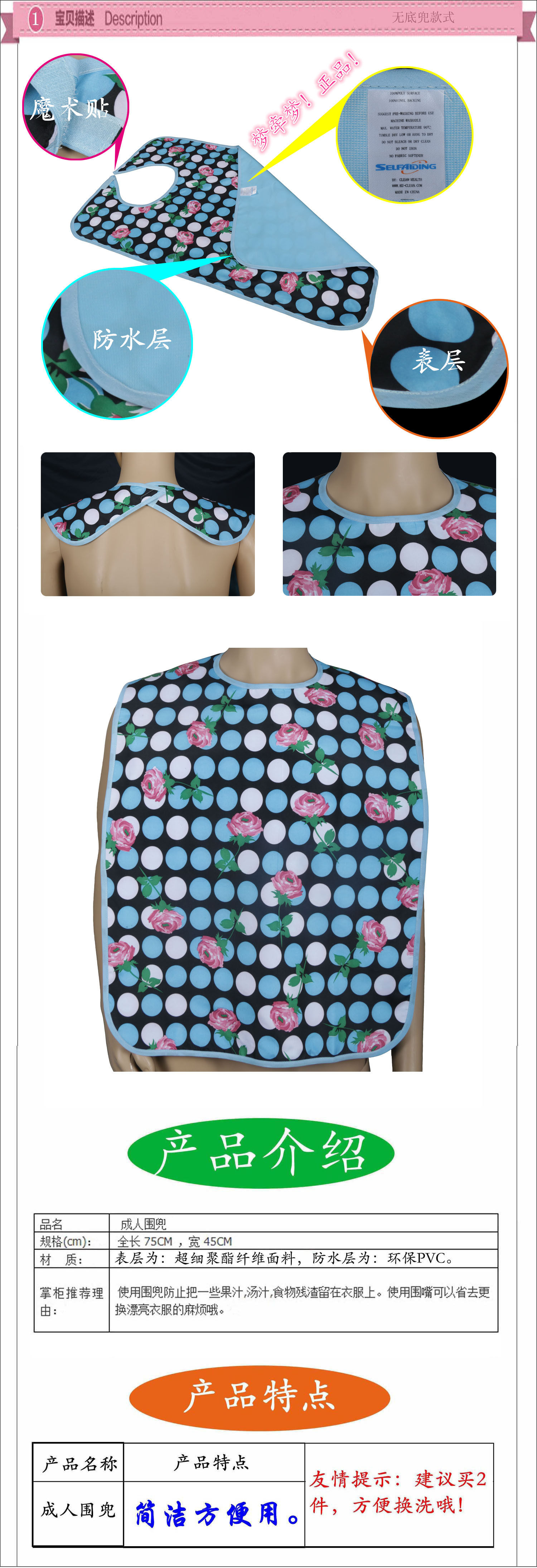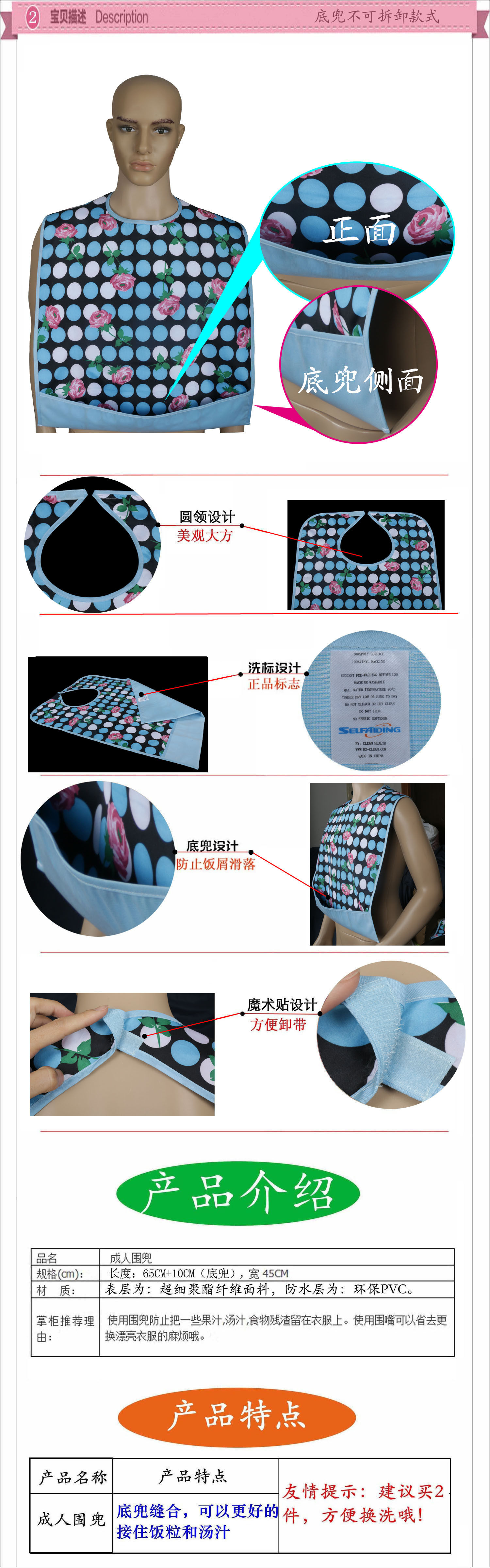 Правильный метод использования: может быть промыт, но не может быть выставлен.Не используйте порошок для белья, промыть пятна моющим средством.Один нагрудник не может быть использован все время (не более недели), и он должен быть заменен другим.
