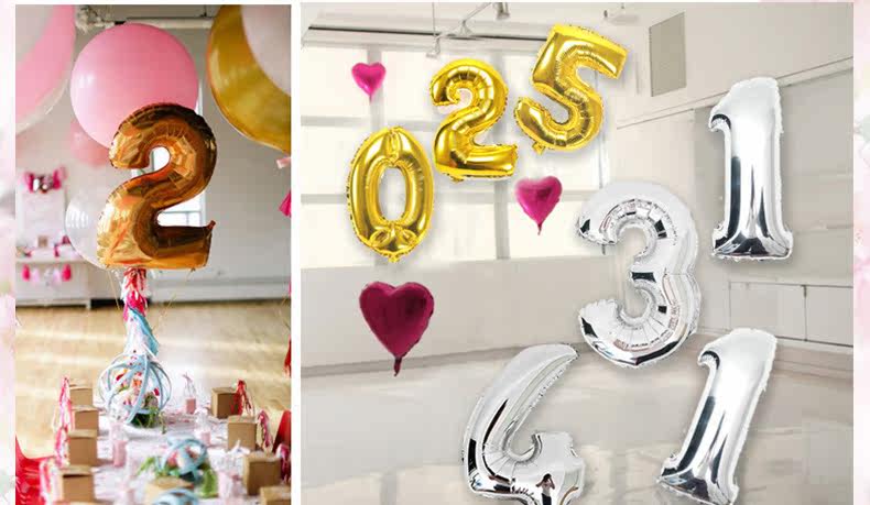 Цифровой золотой серебряный воздушный шар, 16 дюймов, наряжаться