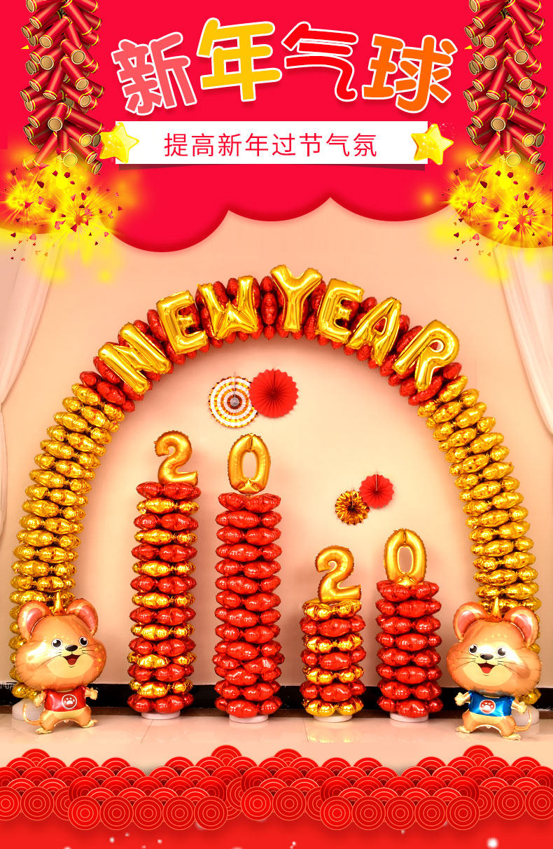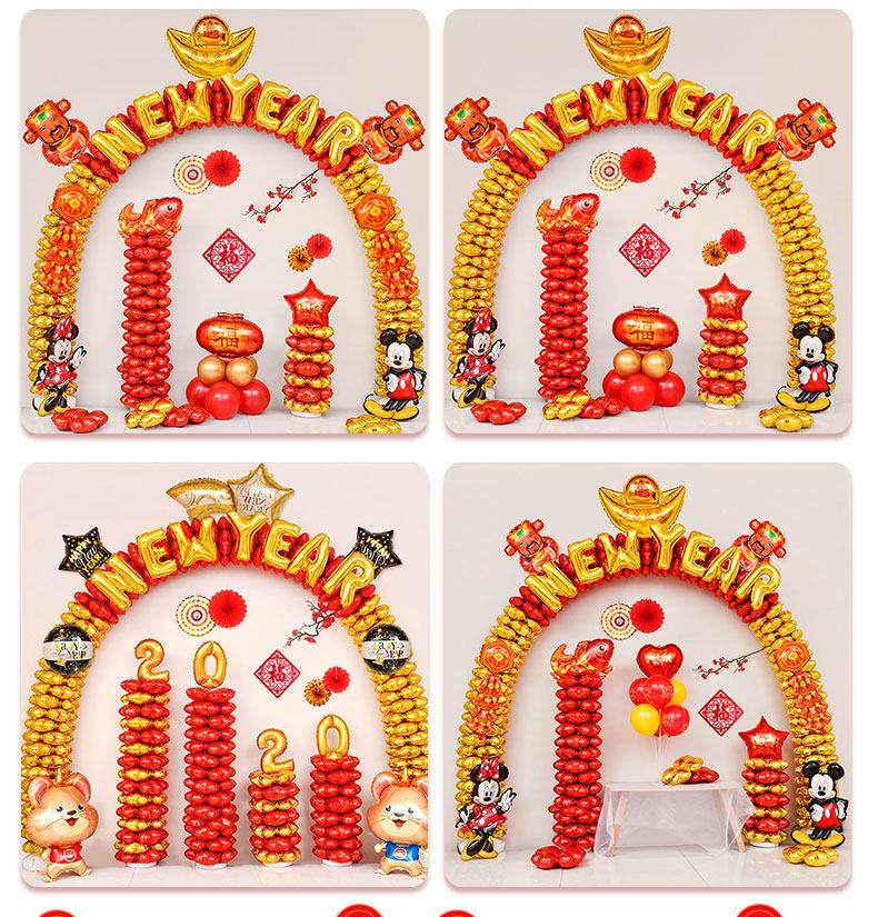 Новый год новогодних шарических отделений. Годовая сцена на сцене встречи 2021 Niu Niu Nian Pillar Arches New gular Balloon Road Quotes