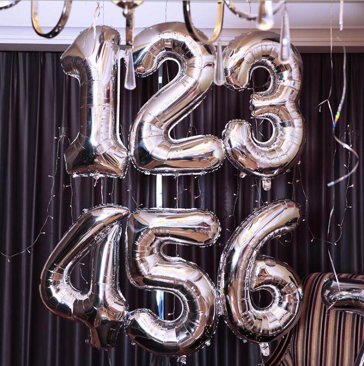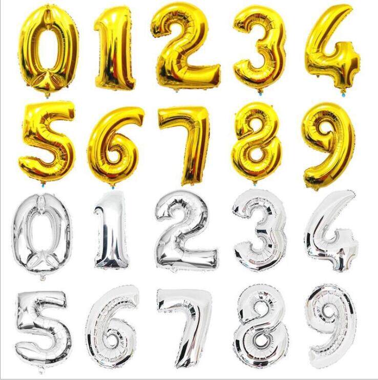 Серебряный золотой черный цифровой большой воздушный шар, 32 дюймов, золото и серебро, розовое золото