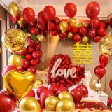 Свадебная компоновка свадебная спальня украшения конфессии на воздушные шары Комбинированные пакет сеть красная романтическая свадебная сцена праздничные поставки