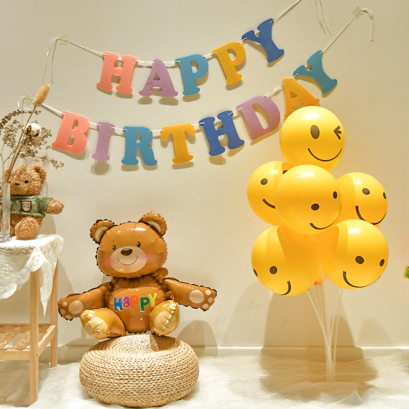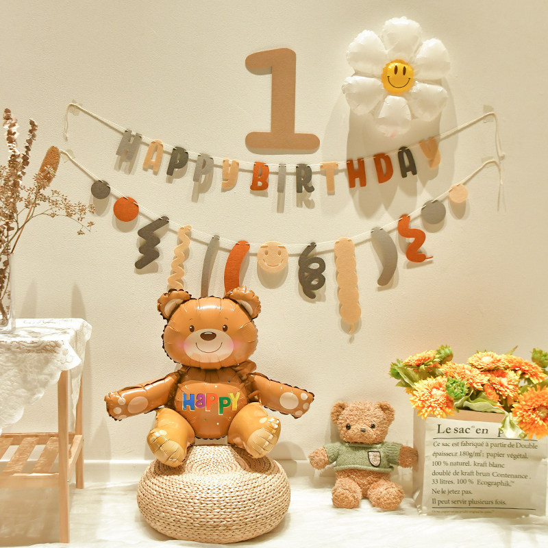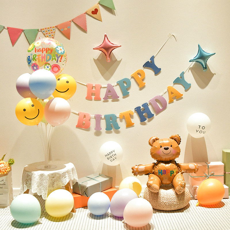 小 红 网红 生日 拉花拉旗桌 飘气球 背景墙 男女 宝宝 周岁 装饰 场景布置