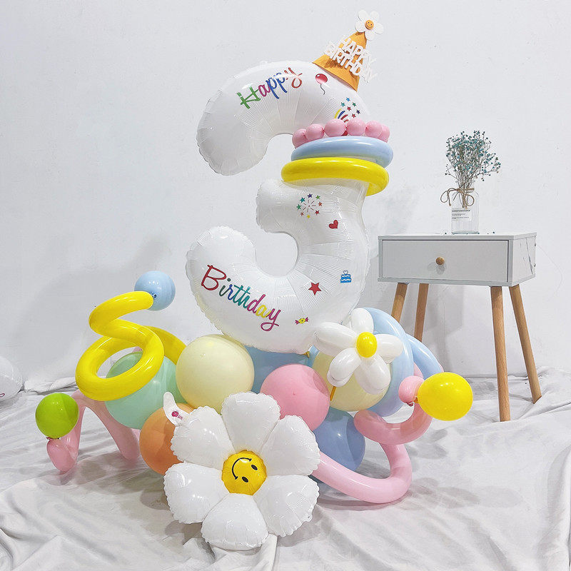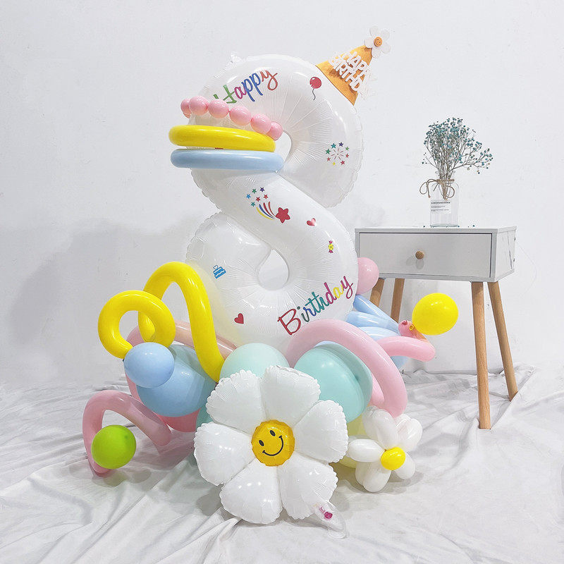 Белый цифровой воздушный шар, столб, дорожный путеводитель, большая сцена для 100-летия ребенка, украшение для фото с ромашкой