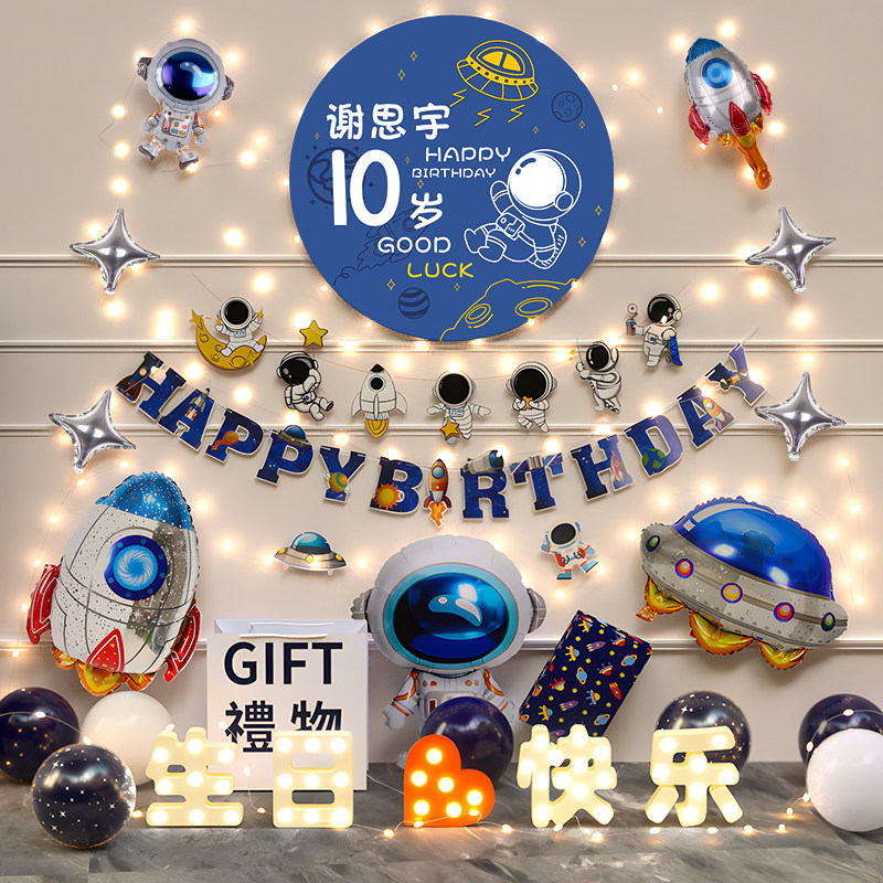 Макет сцены дня рождения мальчика, детская вечеринка 10 лет, счастливая атмосфера, ритуальный воздушный шар, украшение вечеринки, десять лет