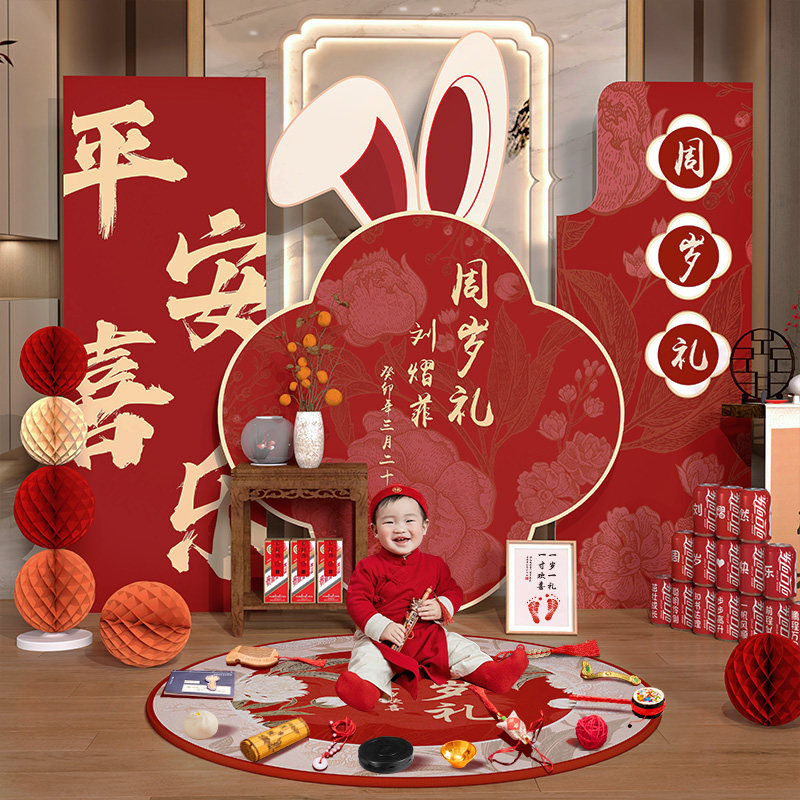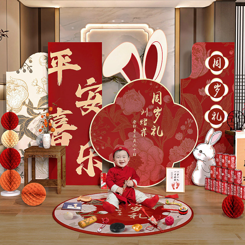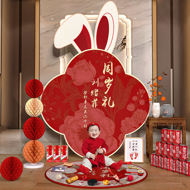 Китайский стиль, первый день рождения, макет сцены, украшение для мальчика, доска, детский фон, стена, кролик, девочка, ловля, подарок на неделю, банкет, один