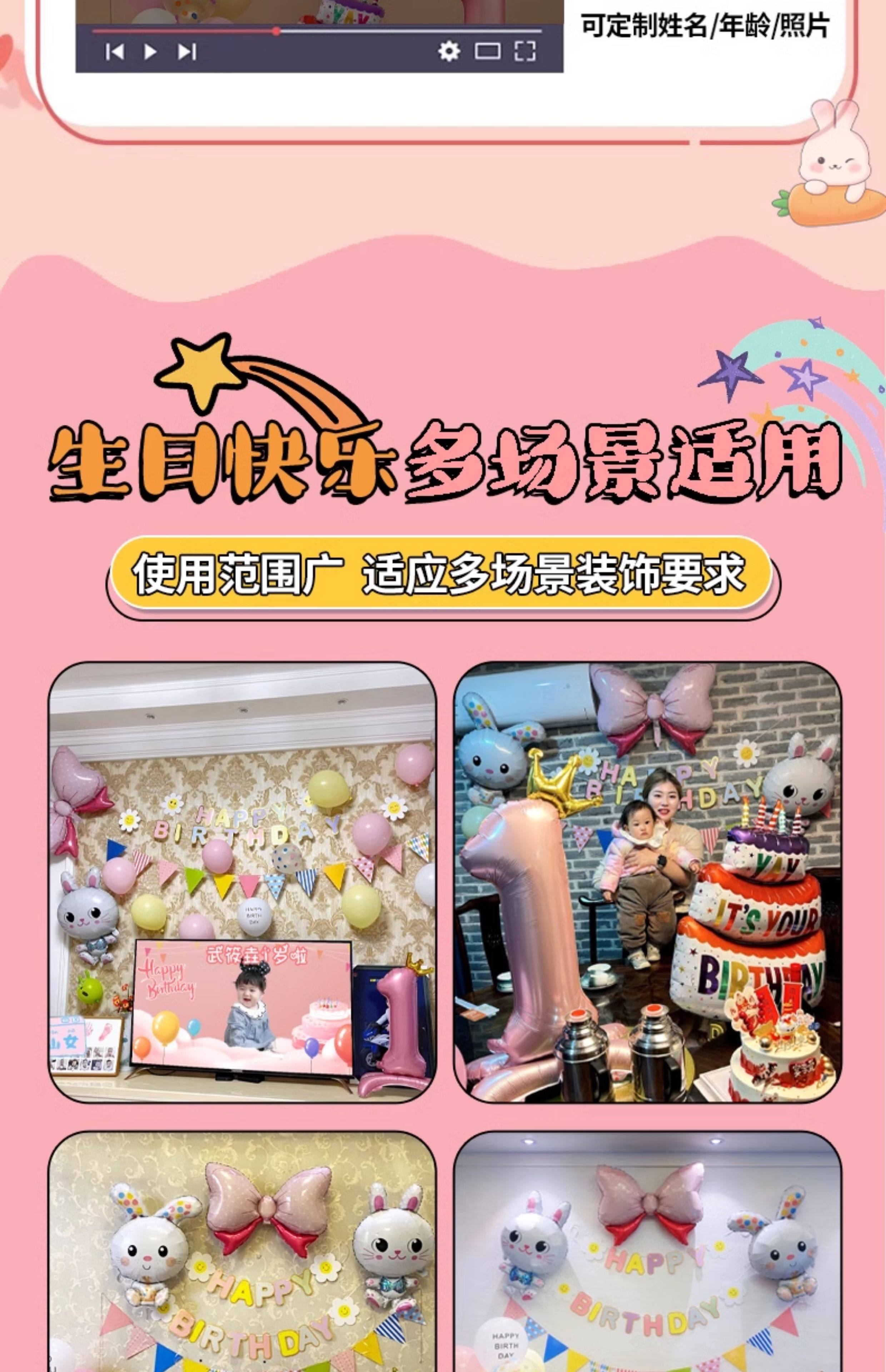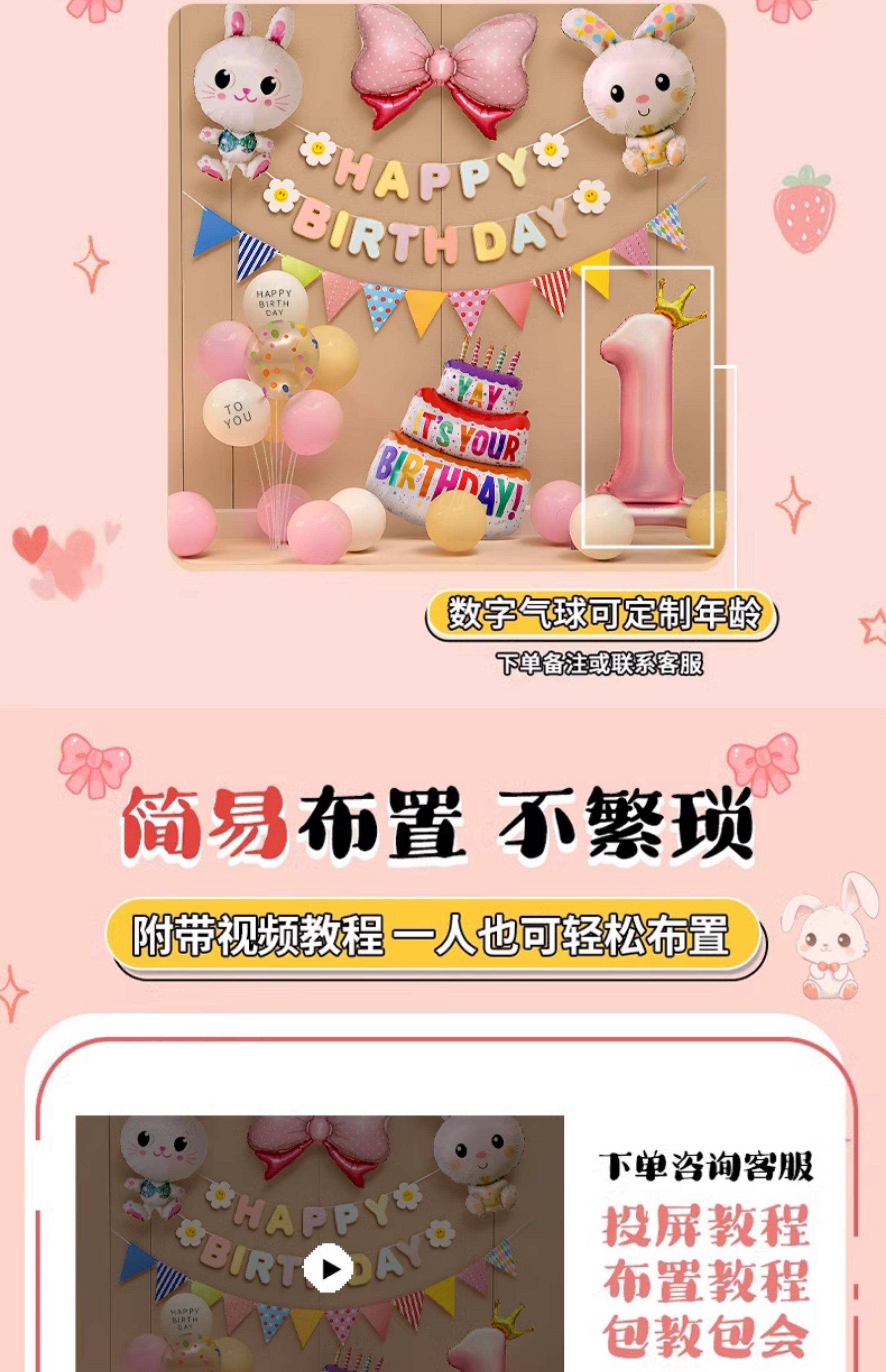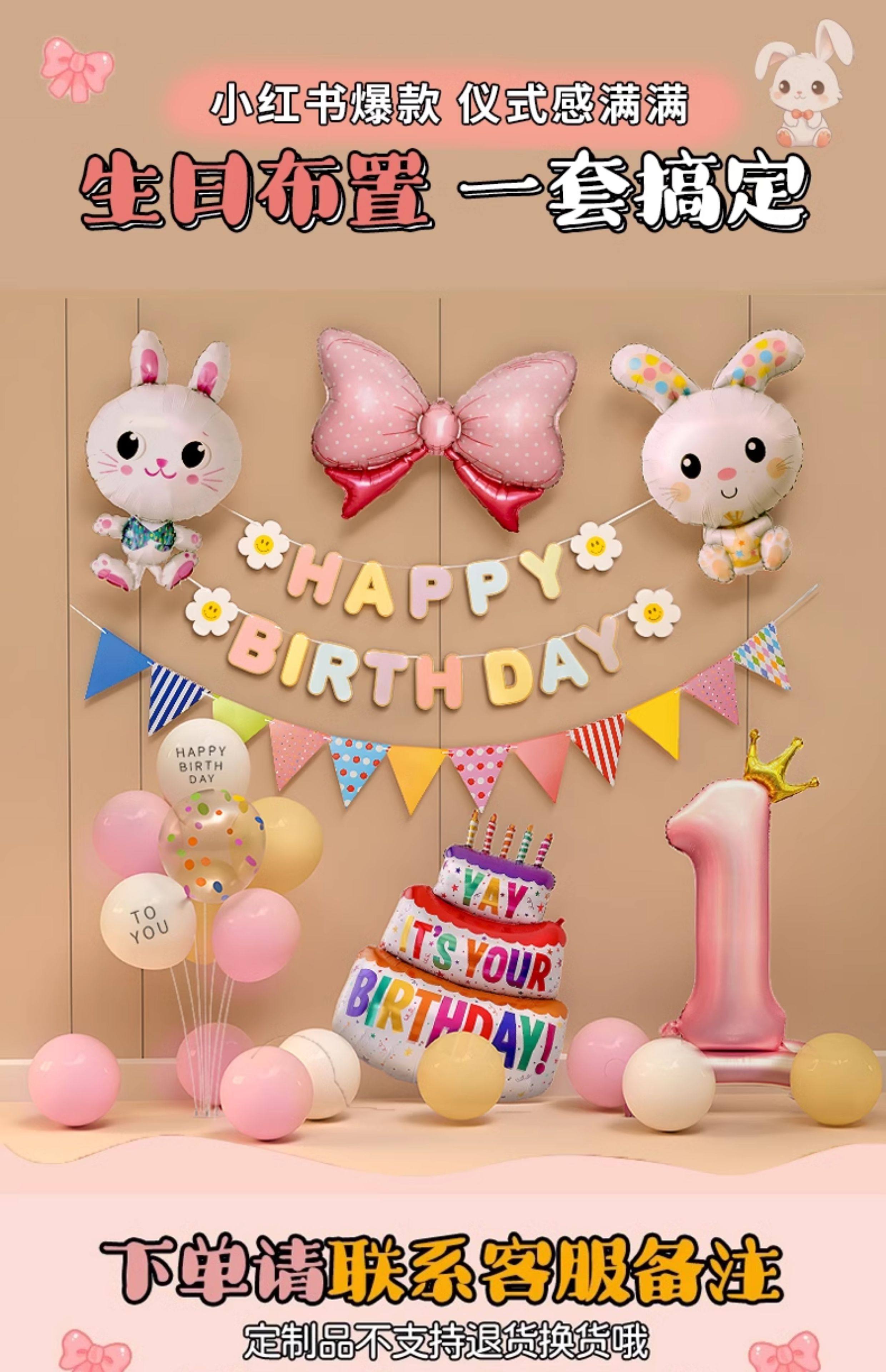 Украшение на 2-й день рождения кролика для девочек и детей, ритуальное украшение сцены на 2-й день рождения, воздушные шары 3