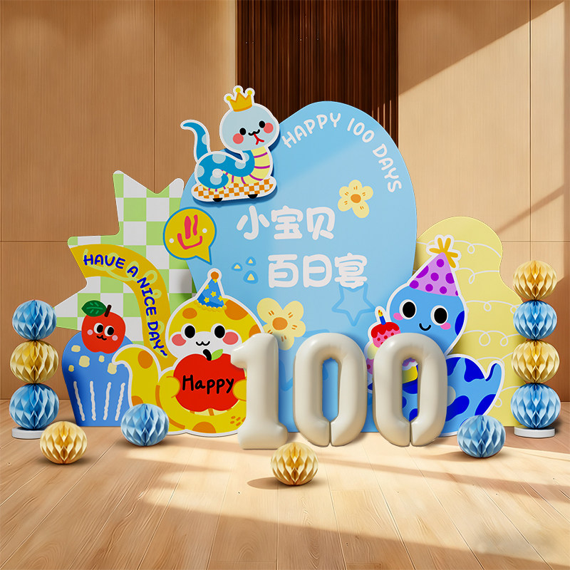 Змея ребенок 100-дневный банкет 100-дневная сцена макет мужской ребенок полнолуние ритуальное украшение отель фон стена kt доска