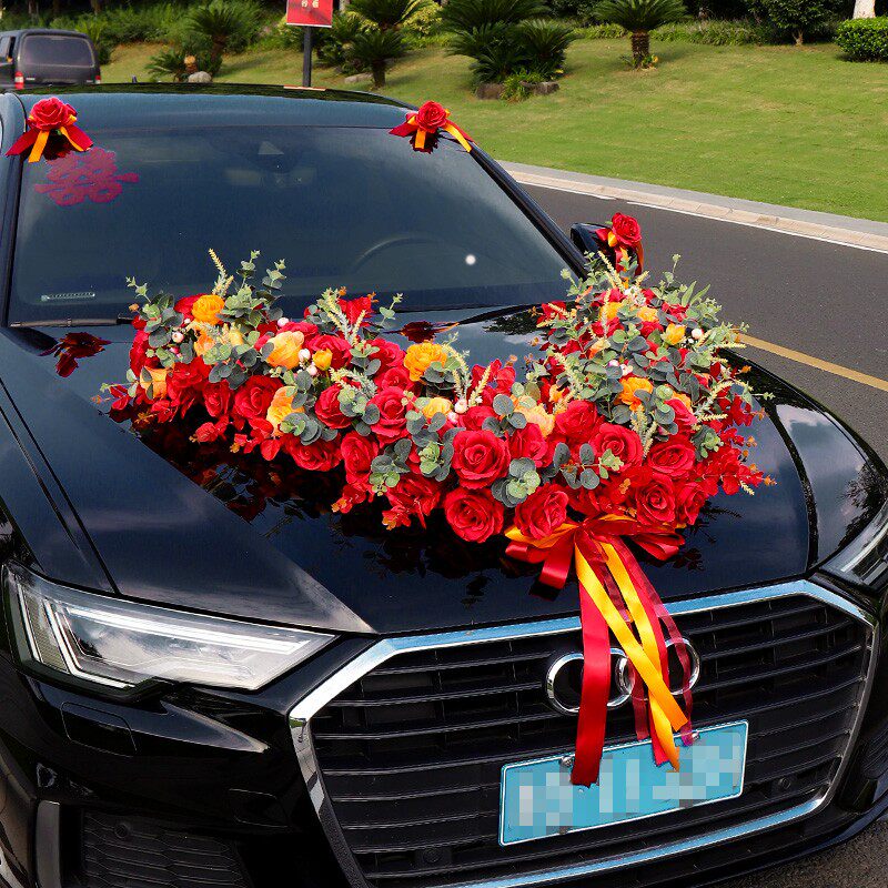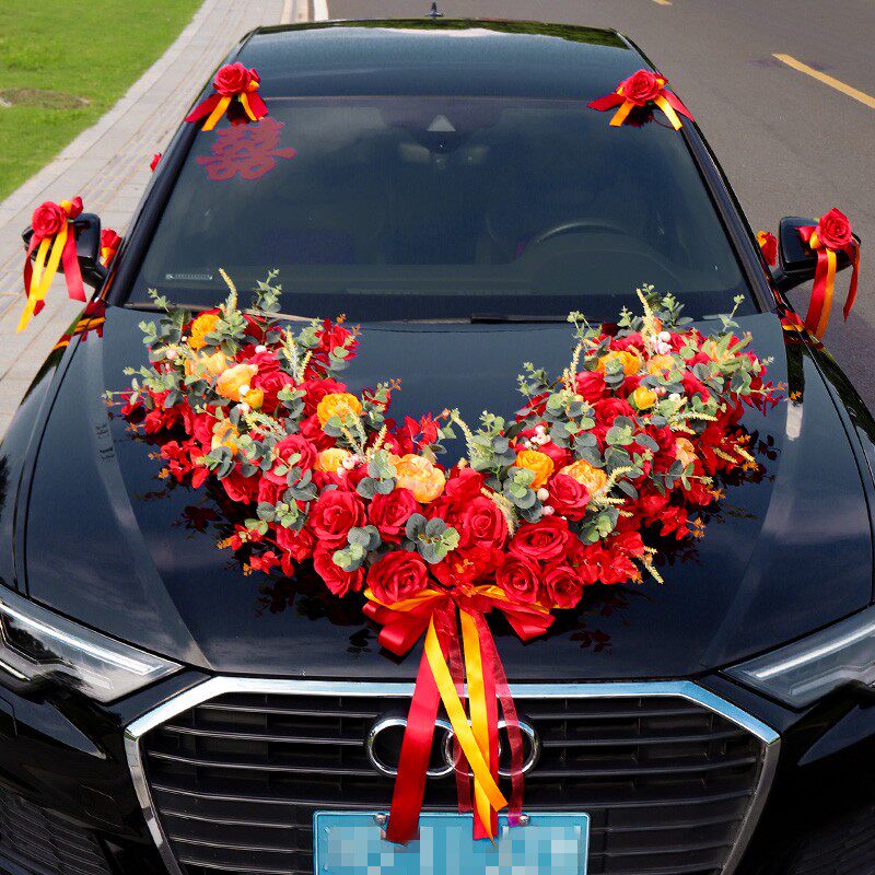 Big V Свадебный автомобиль владелец автомобиль декоративный автомобиль цветочный автомобиль цветочный автомобиль свадебный вспомогательный автомобиль Полный сет команда, чтобы организовать головную машину цветочный грязь всасывание