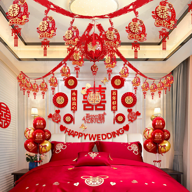 Брак натянуть цветочный свадебный дом украшения набор новая простая женщина мужская мужская планировка спальни.