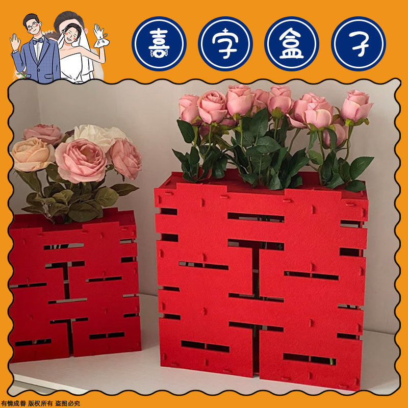 Помолвка, свадьба, трехмерные счастливые персонажи, украшения, специальная творческая имитация цветочного украшения, нетканая двойная коробка, макет свадебного зала