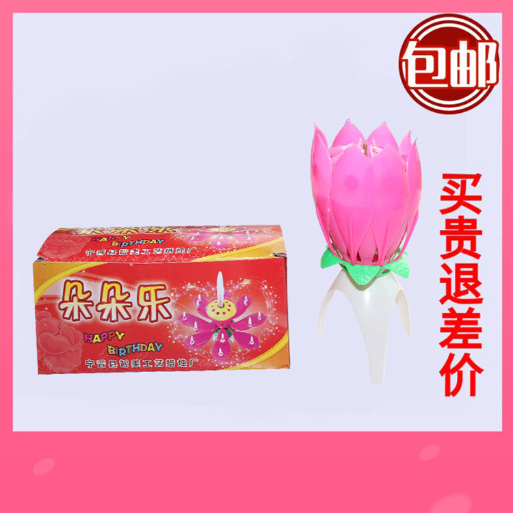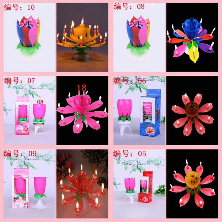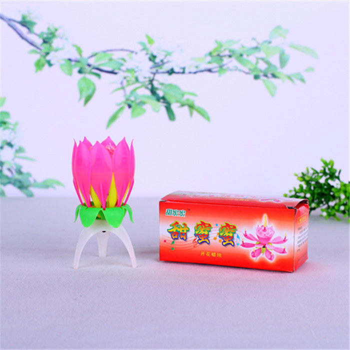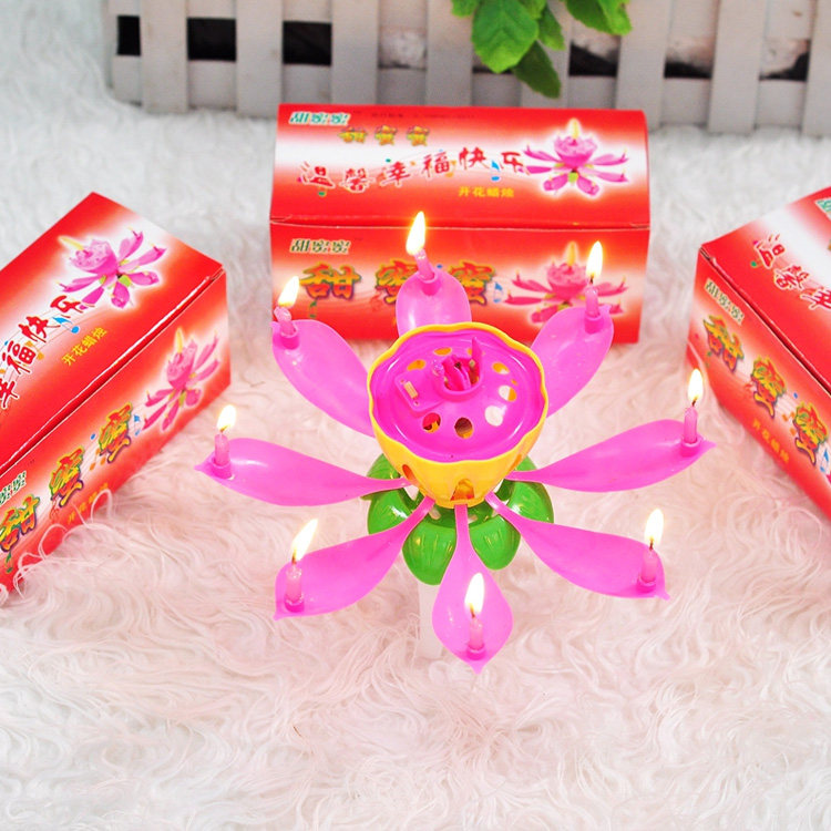 Торт на день рождения с цифровой музыкой творческий лотос цветущий цветы вращающиеся свечи, чтобы петь бездым