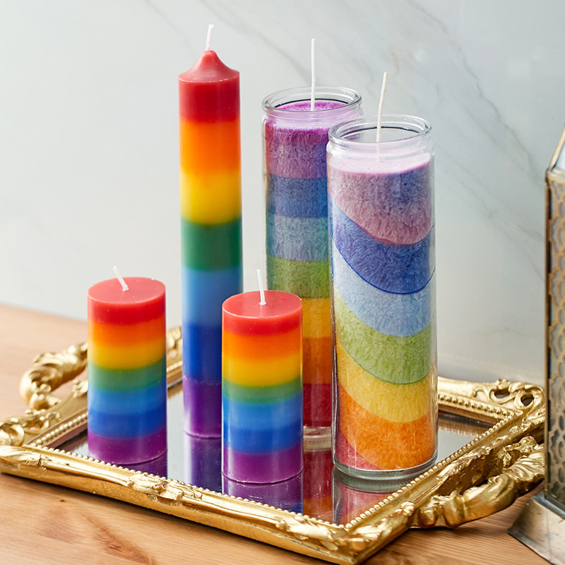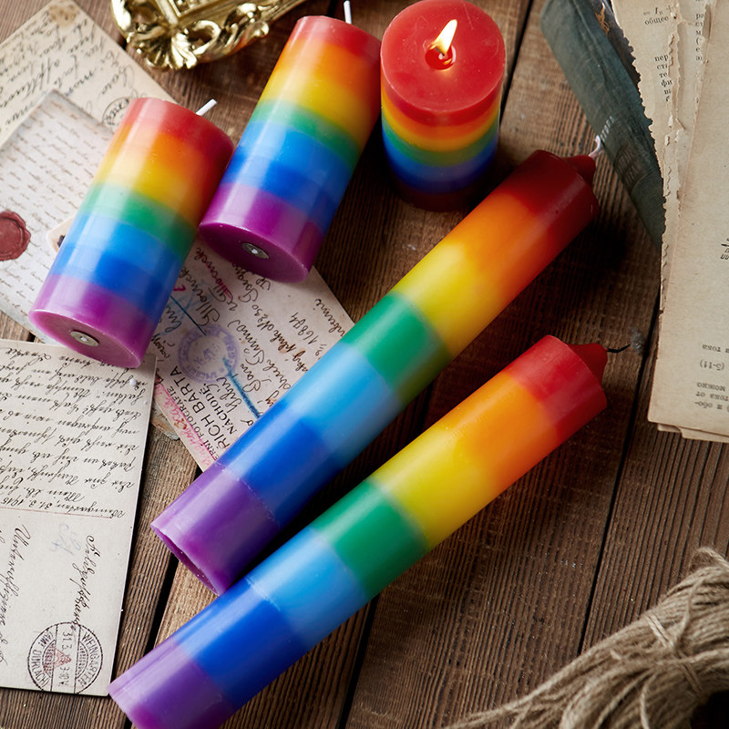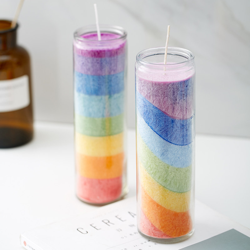 Красочная радужная свеча седьмой длинный стеклянный стеклянный стеклянный красный оранжевый, желтый, зеленый, синий, синий фиолетовый цвет цилиндрическая свеча