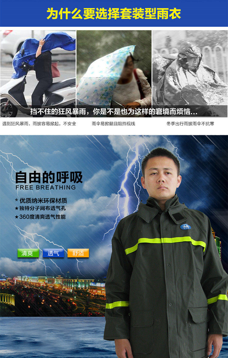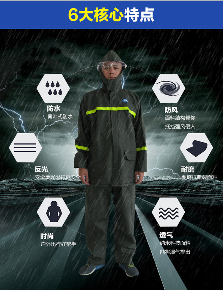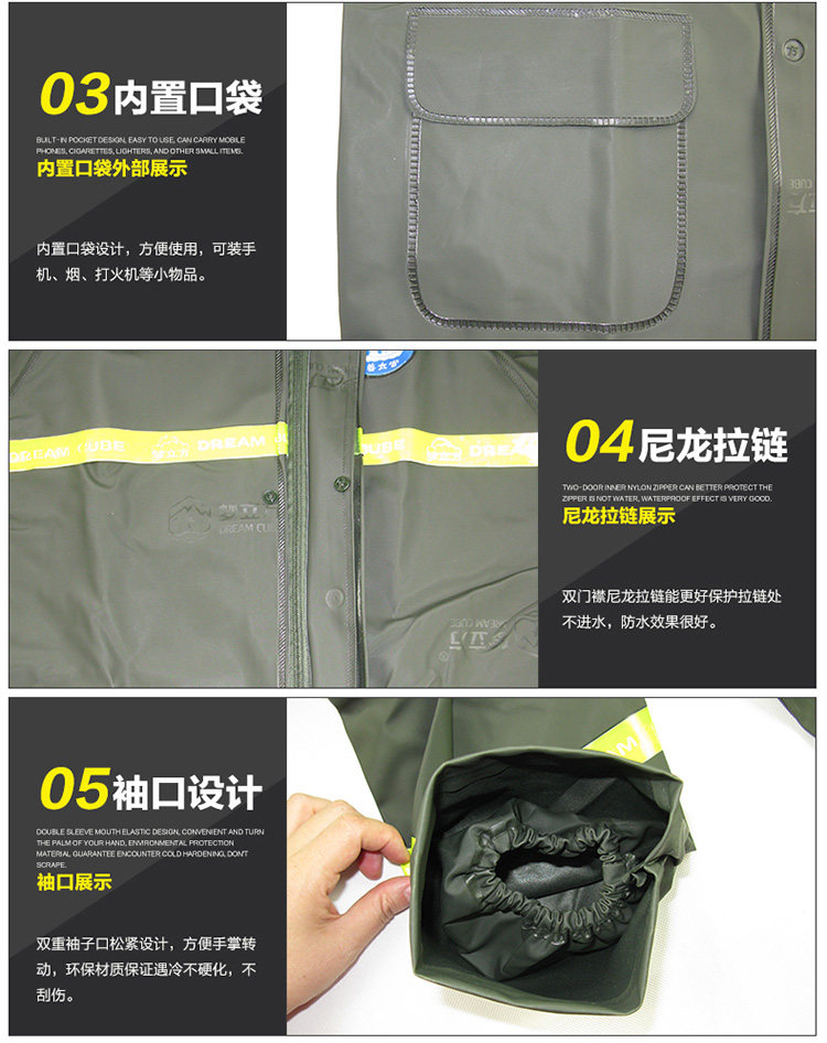 姜太公 Мужской зеленый дождевик, раздельные электрические штаны подходит для мужчин и женщин, увеличенная толщина