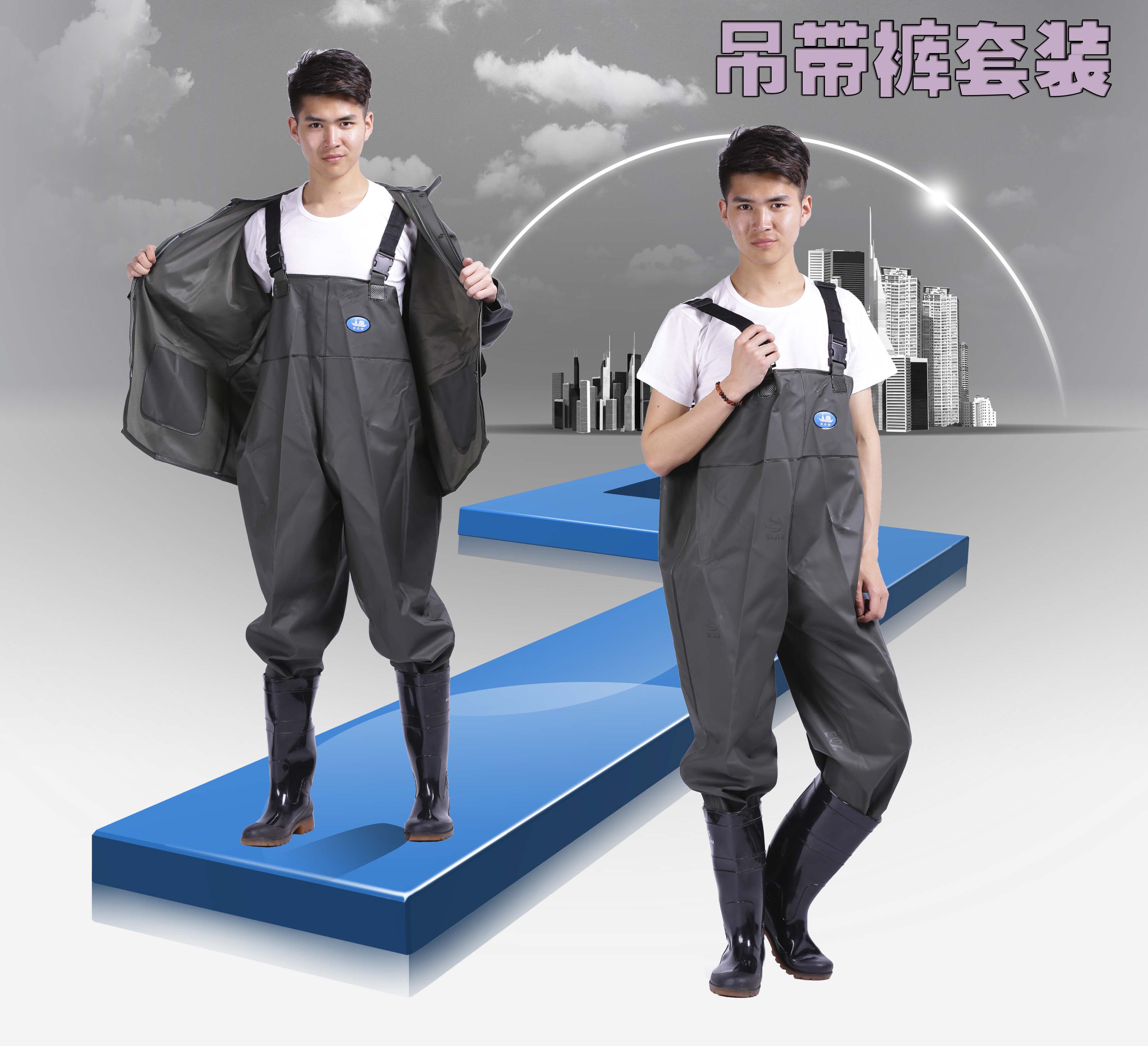 Комбинезон, водонепроницаемые штаны, водонепроницаемый дождевик, цвет, увеличенная толщина, эффект подтяжки