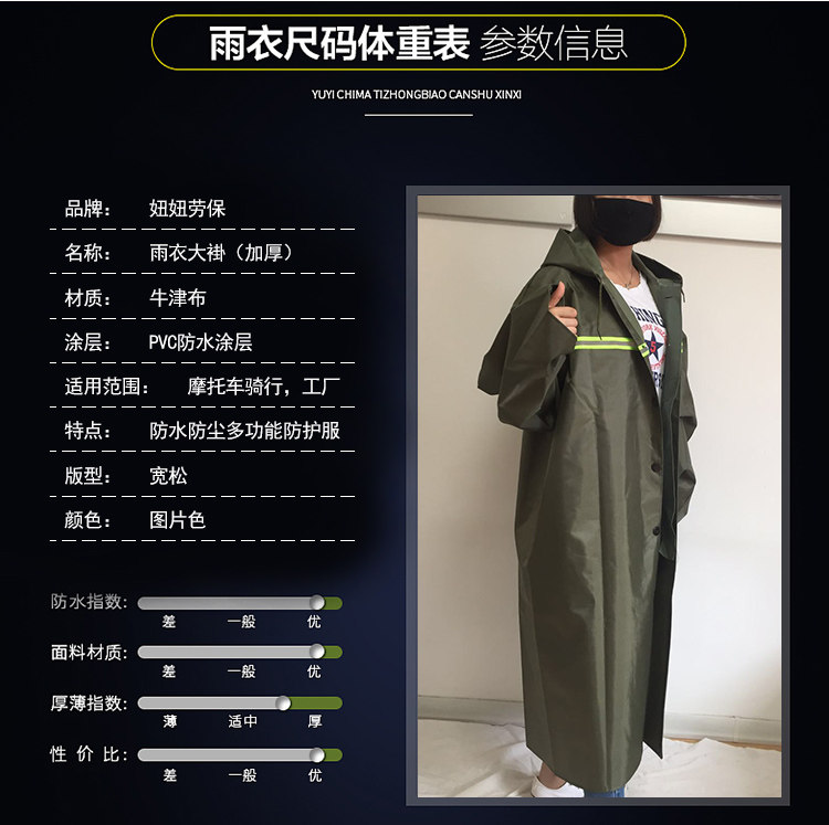 Велосипедный дождевик, старомодный дорожный водонепроницаемый длинный велосипед для взрослых подходит для мужчин и женщин подходит для пеших прогулок, цвет, увеличенная толщина, ткань оксфорд