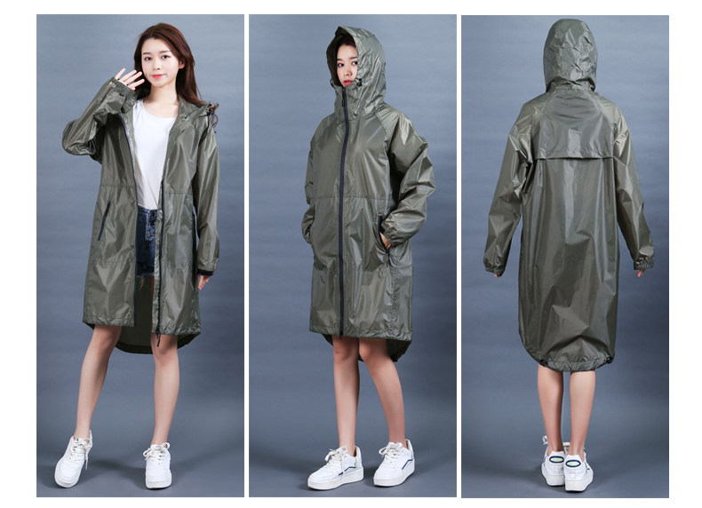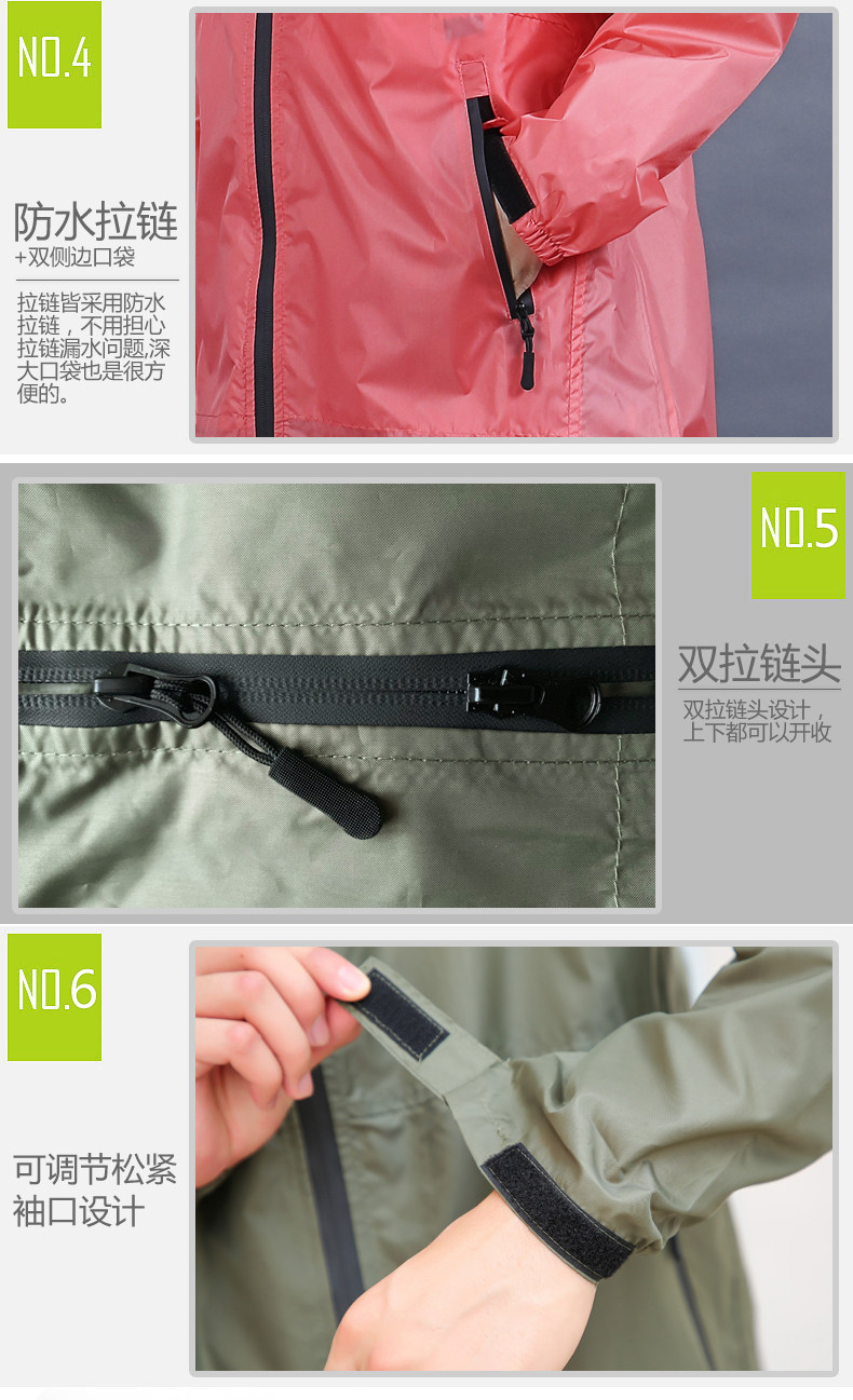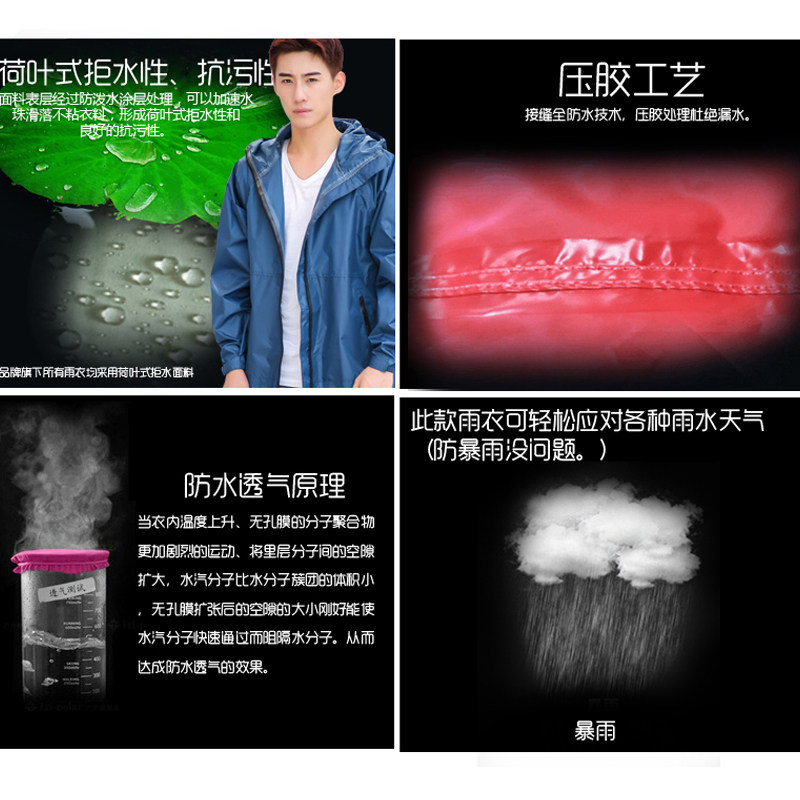 Характеристики дождей: легкий, дышащий,Это может предотвратить дожди, а чистый вес составляет всего около 268 г.Внутренняя строчка плащного плаща обрабатывается технологией утечки сжатия, водонепроницаемой и высушенной.