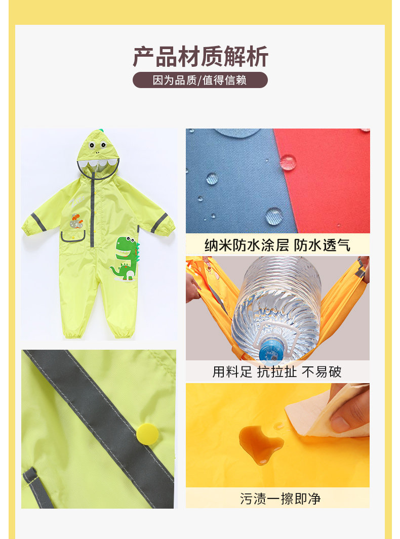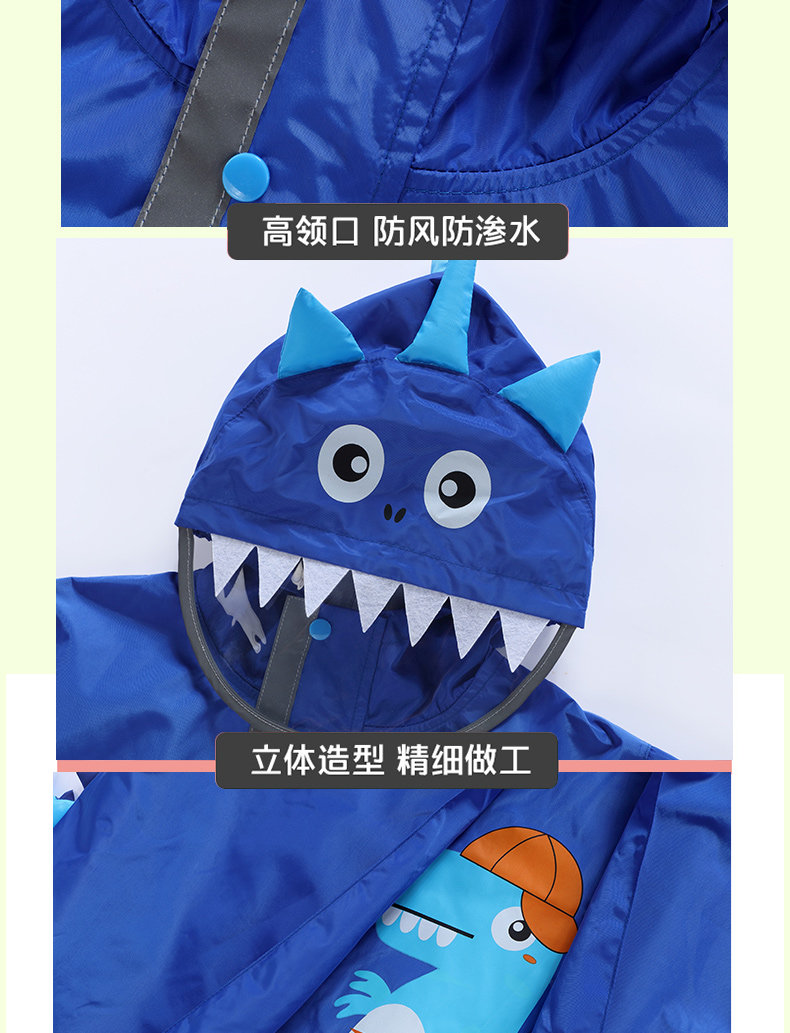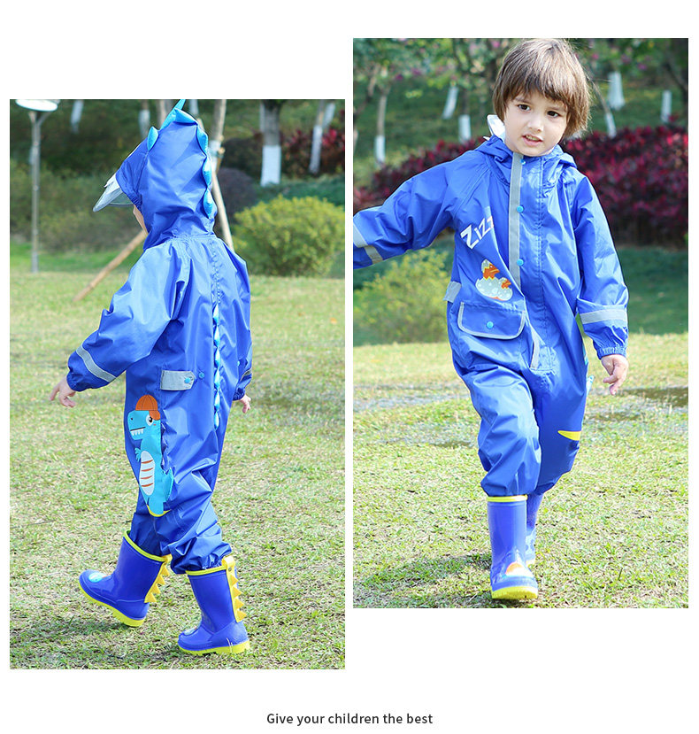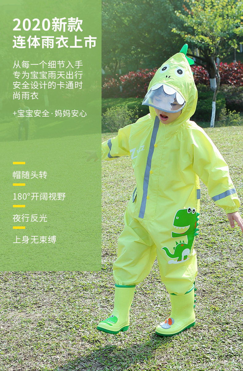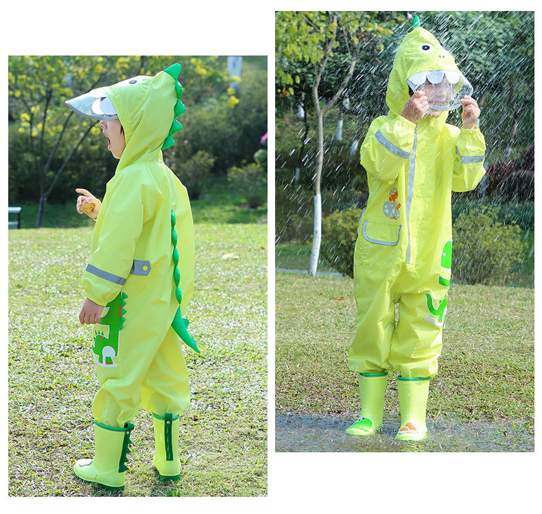 Детский дождевик подходит для мужчин и женщин для детского сада, светоотражающий динозавр, комплект