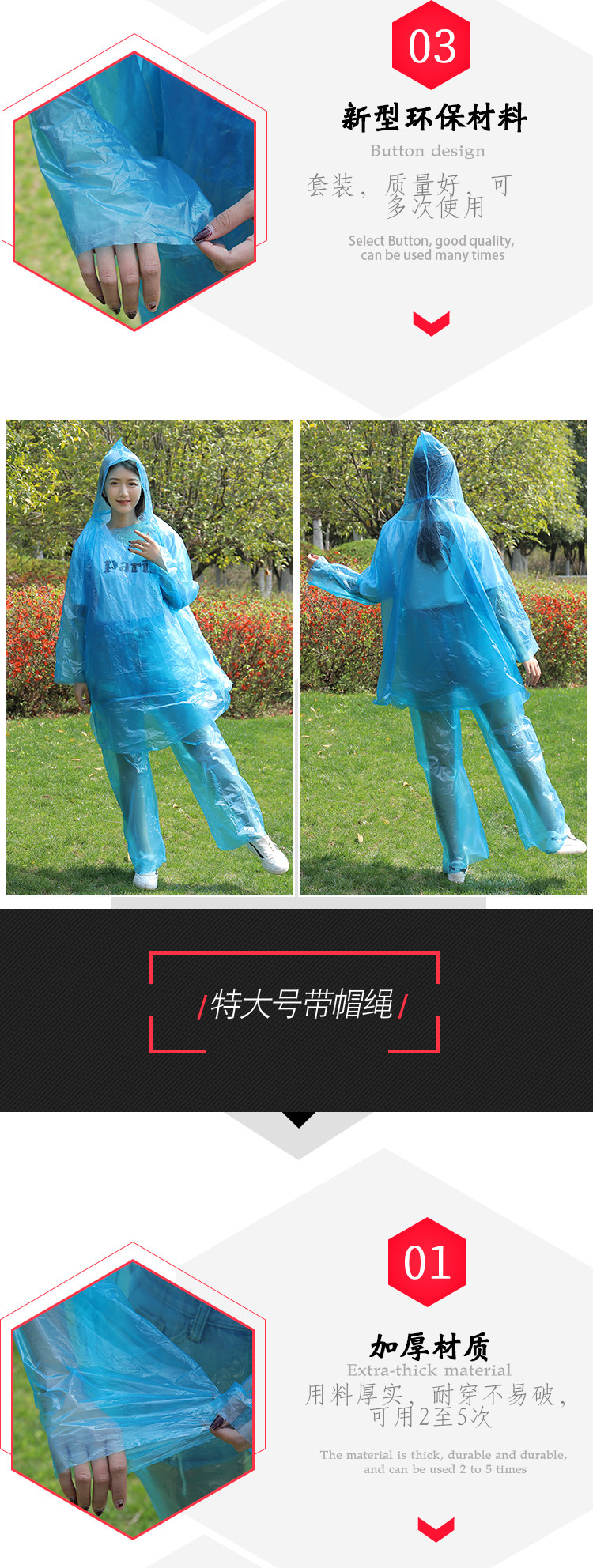 Длинный портативный дорожный дождевик подходит для мужчин и женщин для детей и взрослых, увеличенная толщина, большой размер