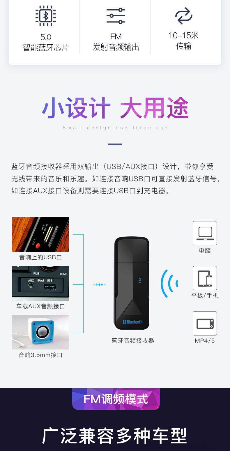 Car Bluetooth -приемник Aux беспроводной радиоприемник USB Аудио -динамик преобразование FM -передатчик 5.0 Audio Plet