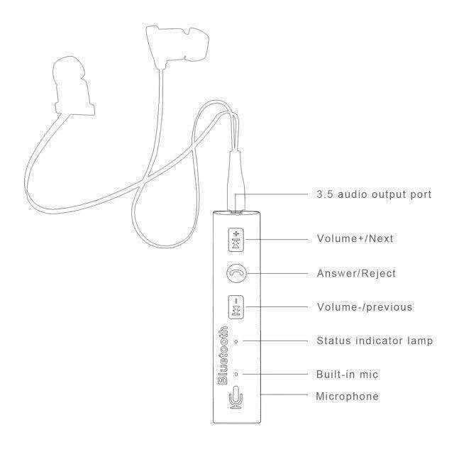 Bluetooth -приемник воротничный кабель Aux Audio Внешний адаптер True Sound Hearset Поворот Bluetooth Wireless Wireless