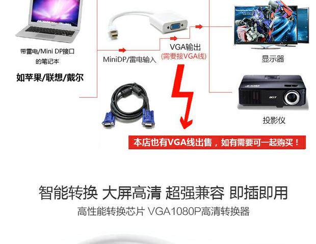 Подходит для Apple Mini DP до VGA Lightning Minidp Minidp для VGA для проводки Mini DP для проектора VGA для проектора VGA