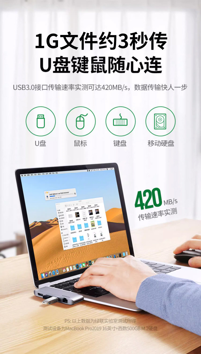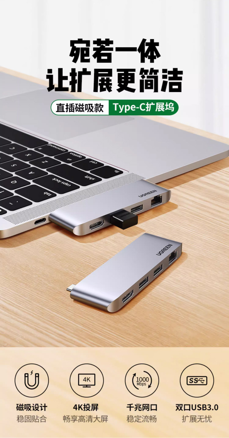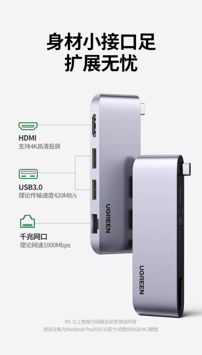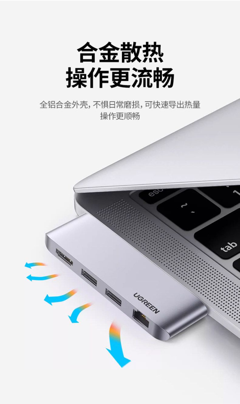 绿联 Расширение док-станции Type-C, расширение проекции экрана HDMI, адаптер Thunderbolt 3, удлинительный USB-кабель, концентратор-концентратор, подходящий для macbookpro, конвертер воздуха, планшет, ноутбук, преобразование сетевого кабеля