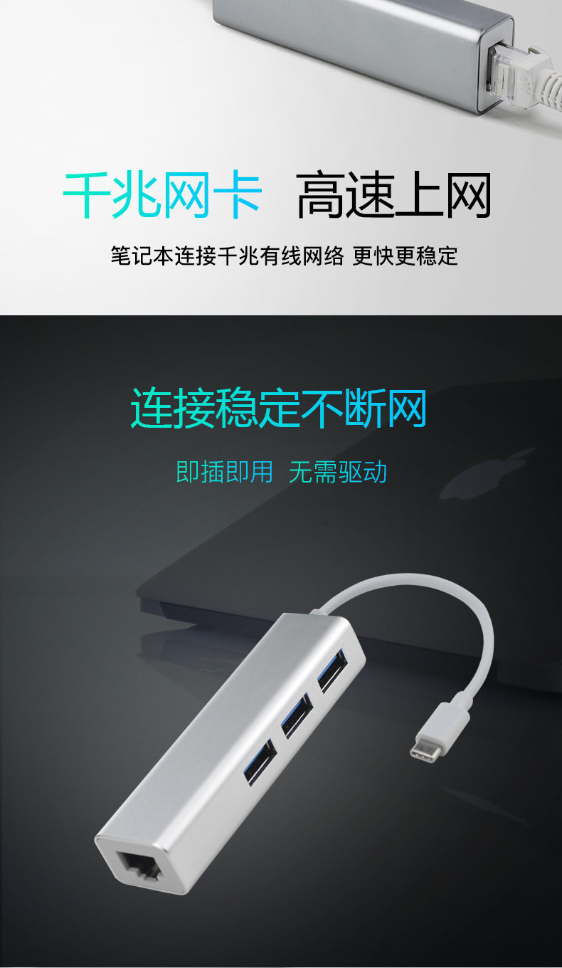 USB-сетевой кабельный конвертер 3.0HUB Wired Gigabit Network Card USB-C в RJ45 Бесплатный водитель сеть в центр рта