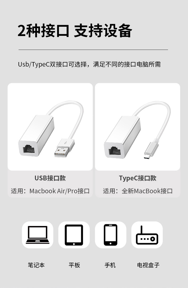 Конвертер сетевого кабеля подходит для Apple MacBookPro Notebbook USB -подключение -IN Интерфейс Gigabit Typec Connect Swite Table Table Table Asus Computer Rotor Multi -Function расширение док -порт сетевой порт сетевой порт