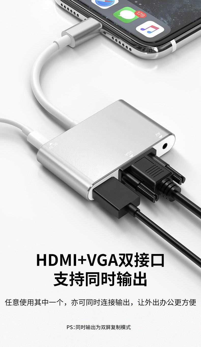 Применимый Apple в HDMI Converter Mobile Phone High -Definition Подключение iPad планшета ротационное подключение Lightning Подключение VGA -интерфейса Проектор TV и экран -Экранно -экранный дисплей iPhone
