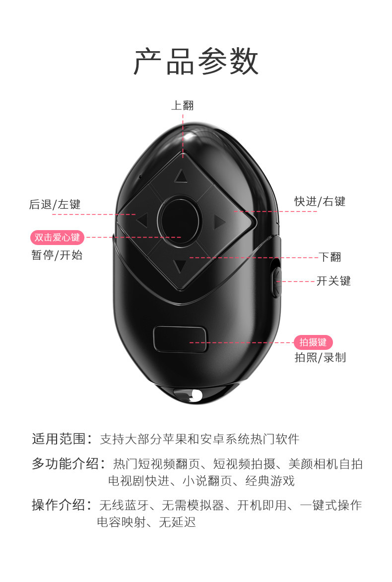 Мобильная Bluetooth с дистанционным управлением затвором съемки видео управление беспроводной фотографией роман романы Ruming Selfie Artifact Douyin Short Video Live Trobcate можно зарядить, Xiaomi Camera